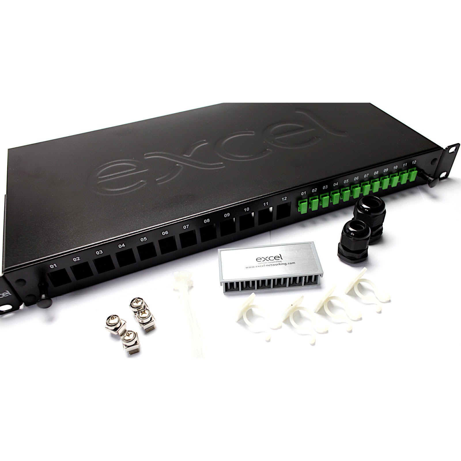 Excel - Panneau hybride Excel Enbeam 12 voies SC/APC Fibre + 12 ports RJ45 non Chargés - 200-941