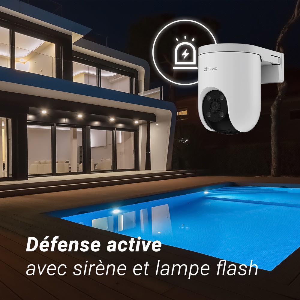 Résolution 2K/Vision nocturne en couleur/Détection des formes humaines/Suivi intelligent/Retour rapide aux positions prédéfinies/Défense active sirène & flash/Audio bidirectionnel/Prise en charge des cartes microSD jusqu’à 512 Go