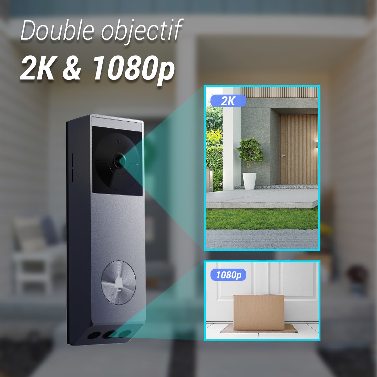 EZVIZ - Sonnette vidéo à double objectif 2K et 1080p alimentée par batterie - EP3X