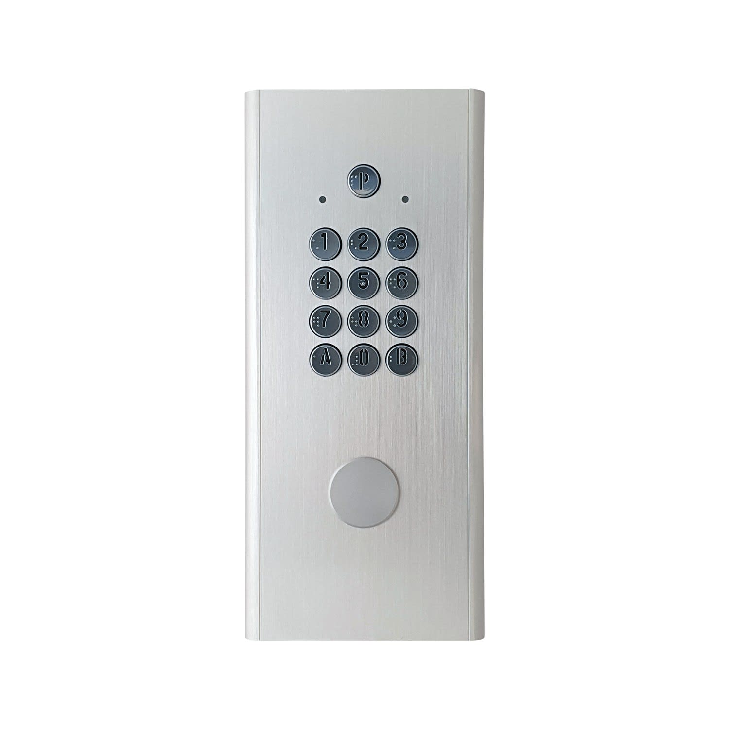 Clavier 50 codes autonome pose encastrée • 1 relais NO/NF défini par dipswitch • Façade en Alu • Grandes touches rétro-éclairées bleu + braille • Pré-percée lect. VIGIK® + cache • Buzzer + Led état • Alim. 12-24 Vcc/Vca