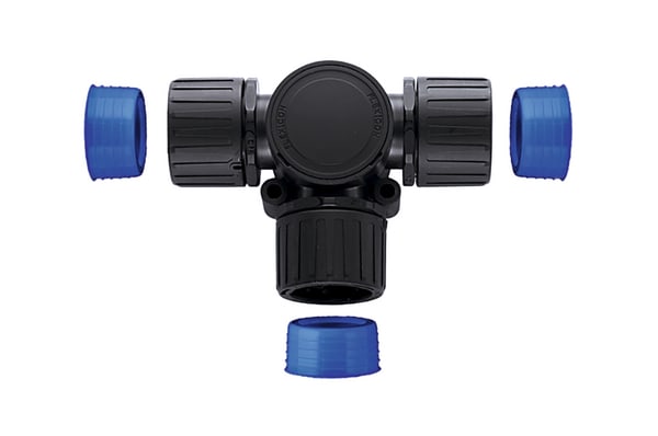 Raccord de dérivation en T HELAGUARD HGL34-T, Ø nominal 34, polyamide 6.6 (PA66) & élastomère thermoplastique (TPE), noir, UL94 V2, certifié IP68, température d'utilisation de -50°C à +135°C, sans halogène, sachet 2 pièces