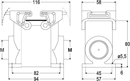 Embase saillie 2 leviers 1 entrée M25 - gabarit57.27 -série T-TYPE C- joint en silicone