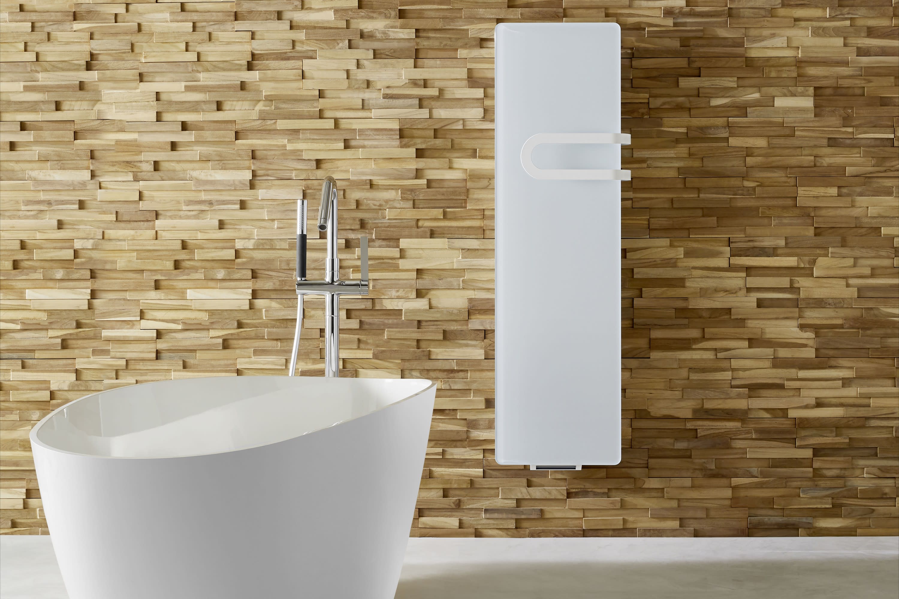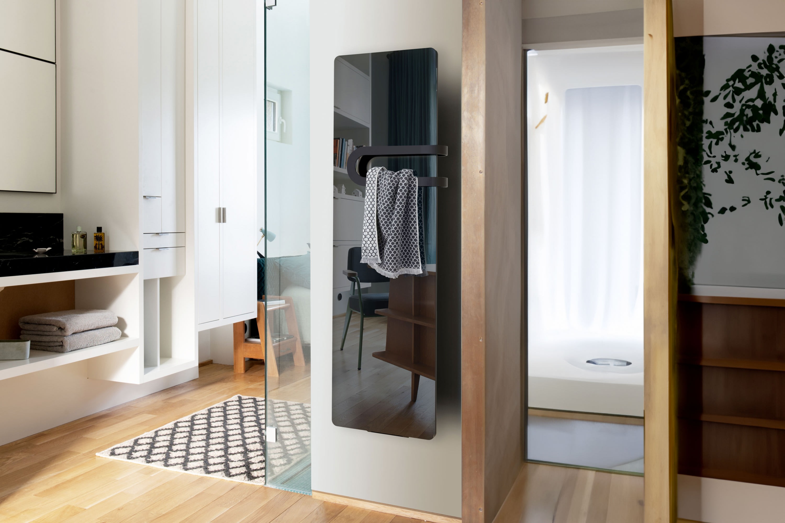 Campaverbains valorise les qualités thermiques et décoratives de la glace de verre épais de 8mm, dans un élégant format de hauteur 1,3 m pour une largeur de seulement 37 cm. Cet élégant appareil intègre une barre de séchage design et fonctionnelle. Une puissance de 1500W , répartie entre 700W chaleur douce et enveloppante émise par la glace de verre et les 800 W apporté par la soufflerie intégrée pour les montées en température instantanées. Campaverbains convient aux salles de bains jusqu'à 10 m2. Chaque radiateur est un élément de décoration d'intérieure à part entière la gamme se décline en 3 types de finitions verre brillantes. Reflet , Noir Astrakan, Blanc Lys. Nouvelle interface utilisateur «nativ» avec écran graphique couleur et bouton de navigation rotatif. Connecté* grâce à l'application INTUIS CONNECT with Netatmo* et ses fonctions avancées d’économies d’énergie