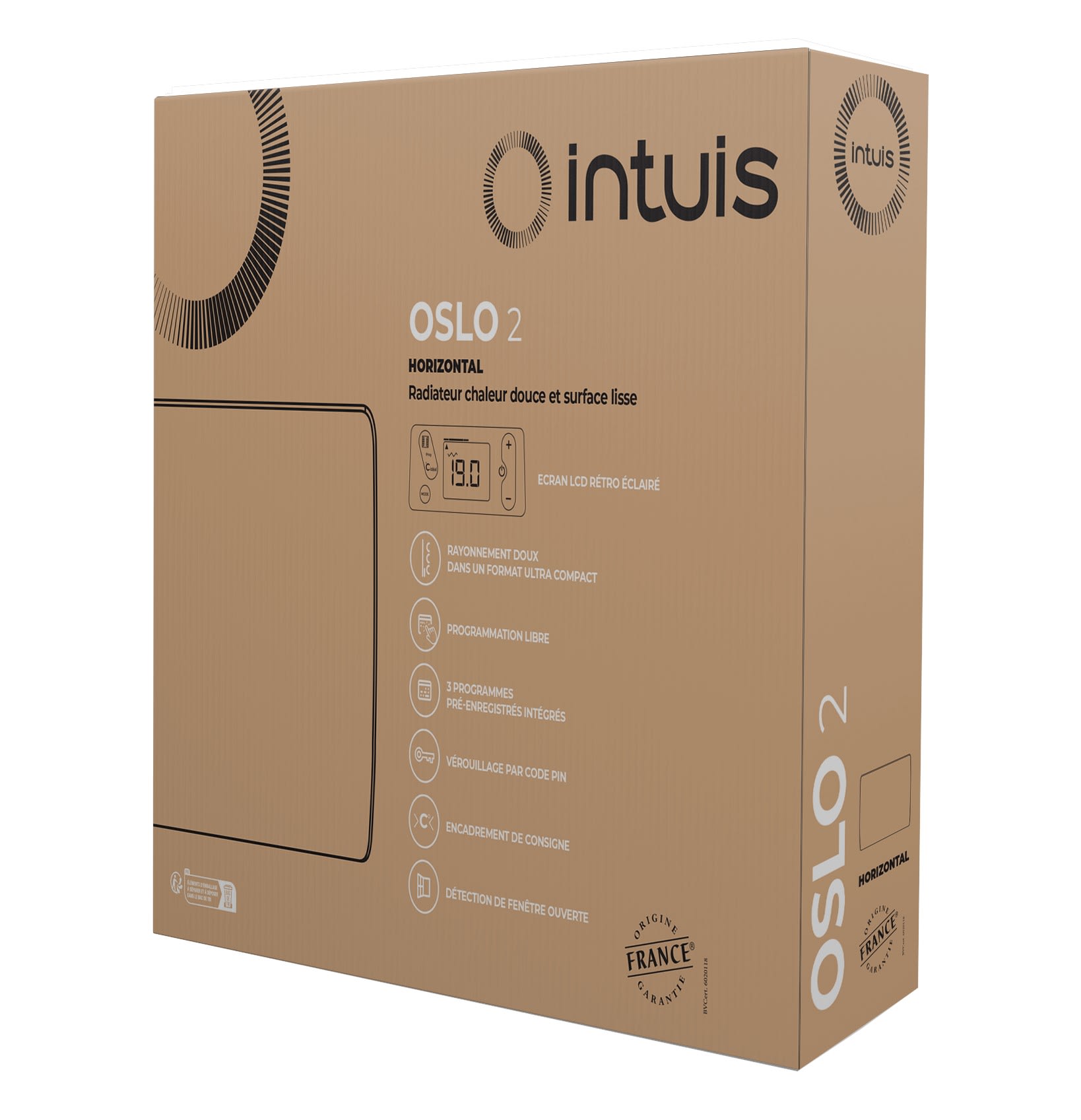 Une surface plane, légèrement galbée qui diffuse une chaleur douce A puissance égale OSLO 2 remplace dans le même encombrement un ancien rayonnant. Nouvelle commande LCD rétro éclairée, ergonomique et discrète De nouvelles fonctions d'économie d'énergie.Spéciales bailleurs, chambres d'hôtes ou hôtelleries : encadrement de consignes et verrouillage des commandes par code PIN. 3 programmes préenregistrées 3 programmes libres Une gamme avec le bon niveau de certification pour les projets de rénovation , Origine France Garantie et NF performance 2 étoiles et un CA de 0,1
