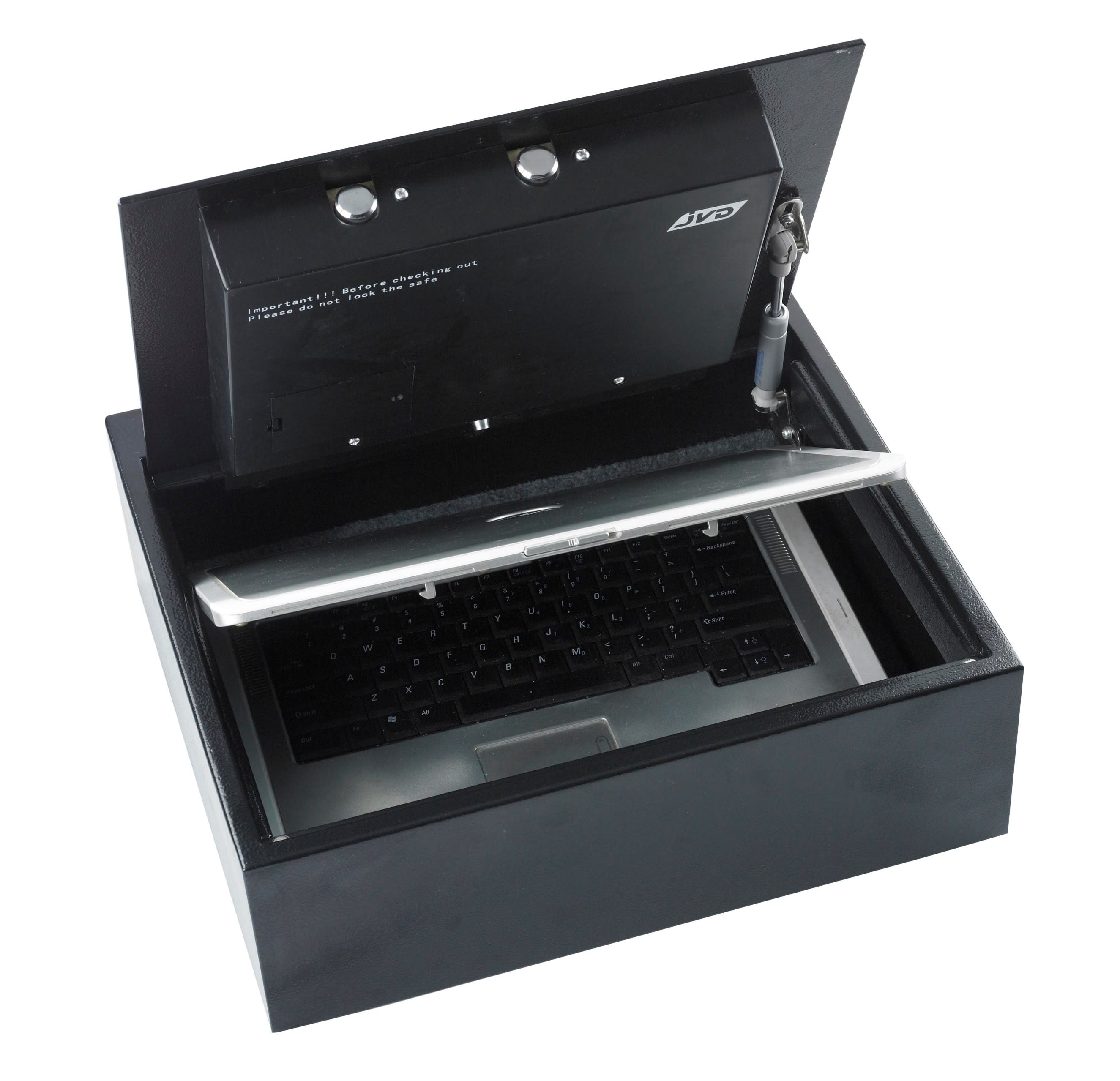Verrouillage par codePeut accueillir un ordinateur portable 15’’Extra platPeut s’installer dans un tiroir