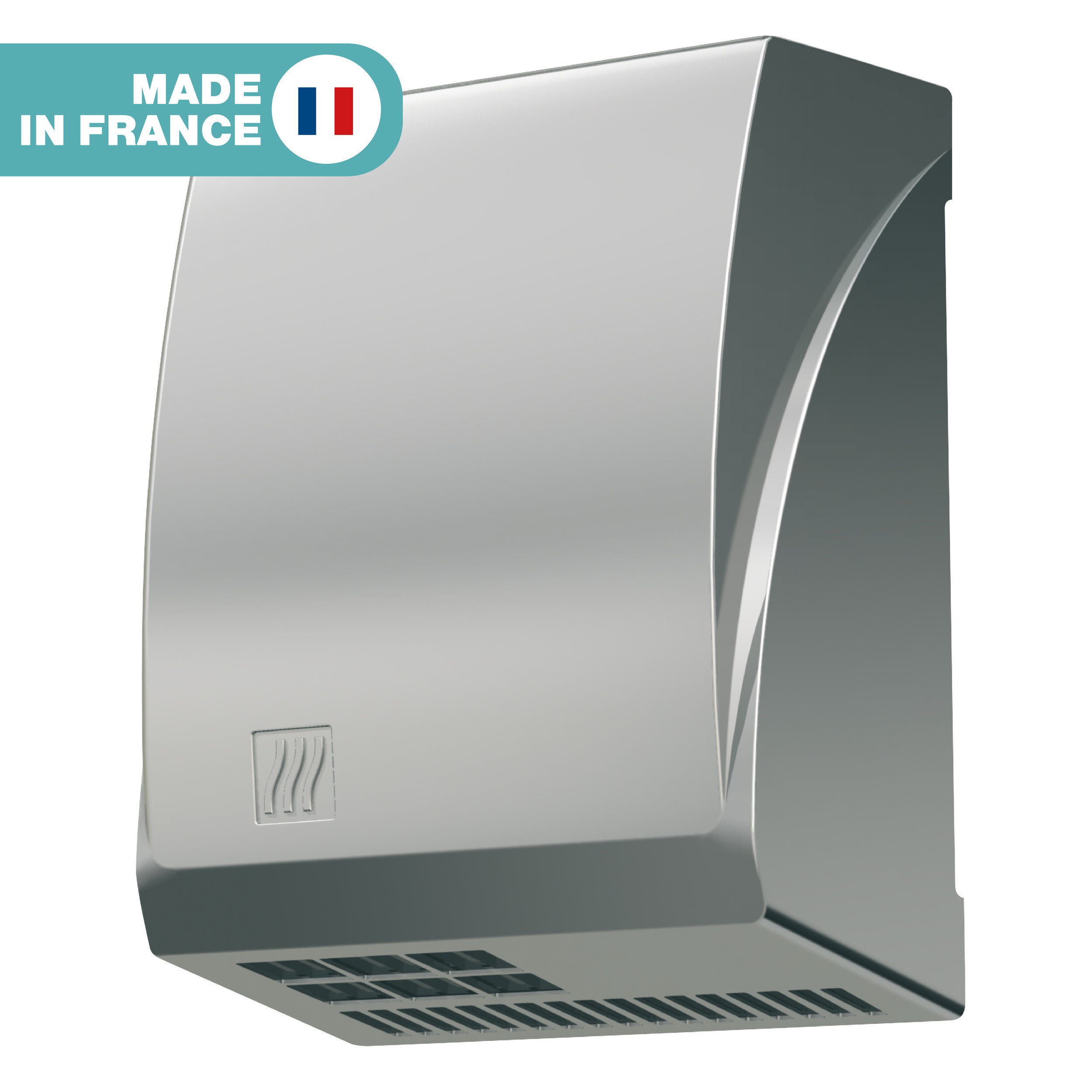 Air chaudAdapté à des fréquentations intensivesSilencieux (70 dB)Anti-vandalisme (capot en aluminium)Remplacement facile d’un sèche-mains existant