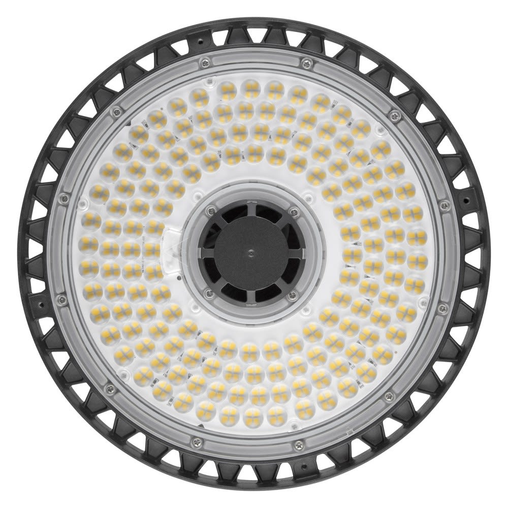Luminaires DALI High-Bay jusqu'à 181 lm/W et UGR attractif. Caractéristiques du produit: DALI versions with IoT-ready DALI-2 driver. Différents flux lumineux et angles de rayonnement pour des hauteurs de montage de ~ 6 m à 18 m en 4 000 K ou 6 500 K. Fourchette de variation (DALI) : 10…100 %. Durée de vie (L80/B10) : jusqu'à 100 000 h (à 35 °C). Avantages du produit: UGR amélioré par rapport aux générations précédentes, jusqu'à UGR ≤ 19 (<150W, 70°) en combinaison avec un réflecteur. Efficacité lumineuse élevée. Économies d'énergie jusqu'à 70 % par rapport aux luminaires équivalents à décharge. Poids et dimensions optimisés grâce au design compact. Zones d'application: Remplace les luminaires High Bay avec lampes mercure ou à décharge. Entrepôts, halls logistiques. Industrie. Haut plafond (par exemple, dans les centres commerciaux, les aéroports, les immeubles commerciaux, les halls). Technique / Accessoires: Crochet de montage fourni. Supports de montage, réflecteurs et réfracteurs disponibles en tant qu'accessoires séparés.