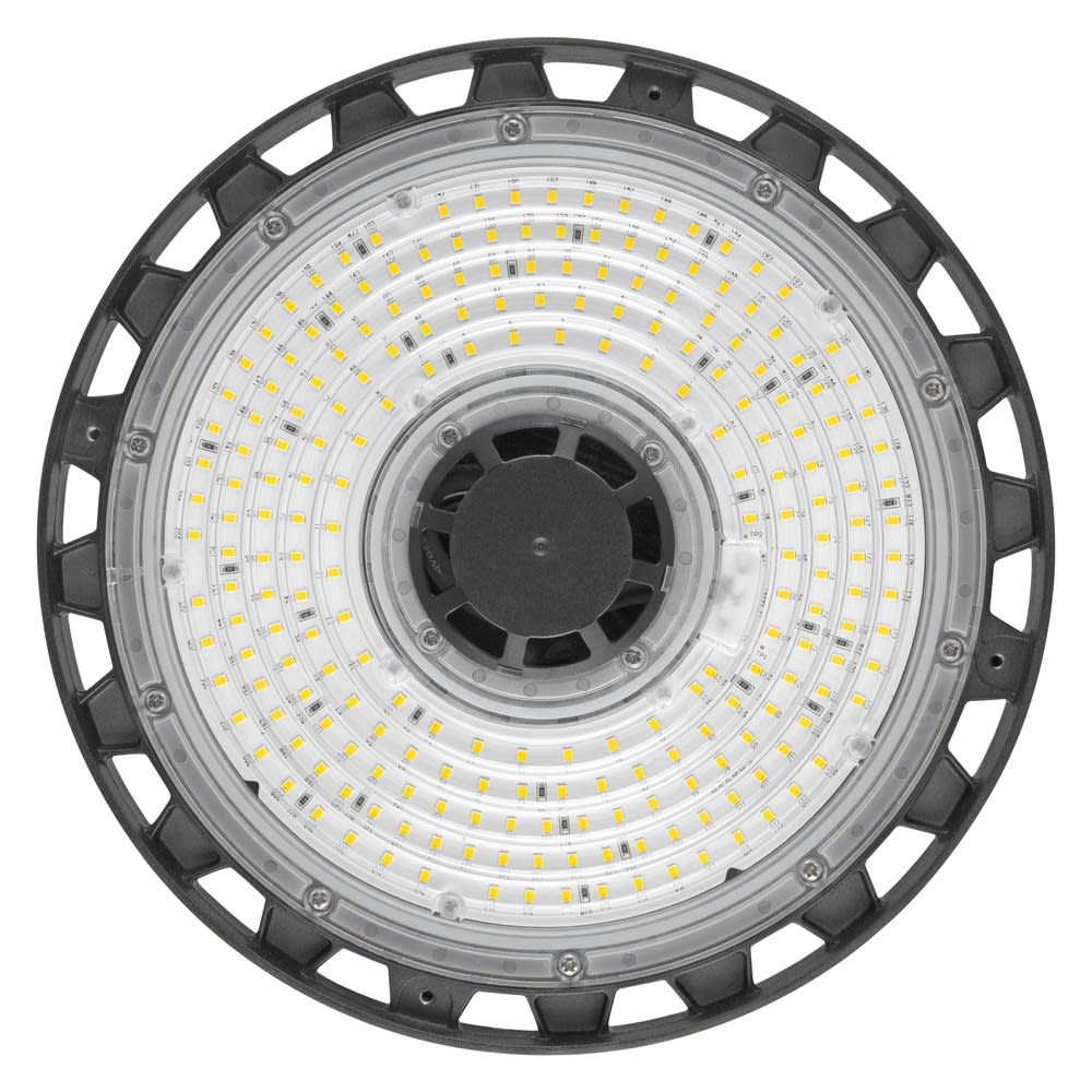 Luminaires DALI High-Bay jusqu'à 181 lm/W et UGR attractif. Caractéristiques du produit: DALI versions with IoT-ready DALI-2 driver. Différents flux lumineux et angles de rayonnement pour des hauteurs de montage de ~ 6 m à 18 m en 4 000 K ou 6 500 K. Fourchette de variation (DALI) : 10…100 %. Durée de vie (L80/B10) : jusqu'à 100 000 h (à 35 °C). Avantages du produit: UGR amélioré par rapport aux générations précédentes, jusqu'à UGR ≤ 19 (<150W, 70°) en combinaison avec un réflecteur. Efficacité lumineuse élevée. Économies d'énergie jusqu'à 70 % par rapport aux luminaires équivalents à décharge. Poids et dimensions optimisés grâce au design compact. Zones d'application: Remplace les luminaires High Bay avec lampes mercure ou à décharge. Entrepôts, halls logistiques. Industrie. Haut plafond (par exemple, dans les centres commerciaux, les aéroports, les immeubles commerciaux, les halls). Technique / Accessoires: Crochet de montage fourni. Supports de montage, réflecteurs et réfracteurs disponibles en tant qu'accessoires séparés.