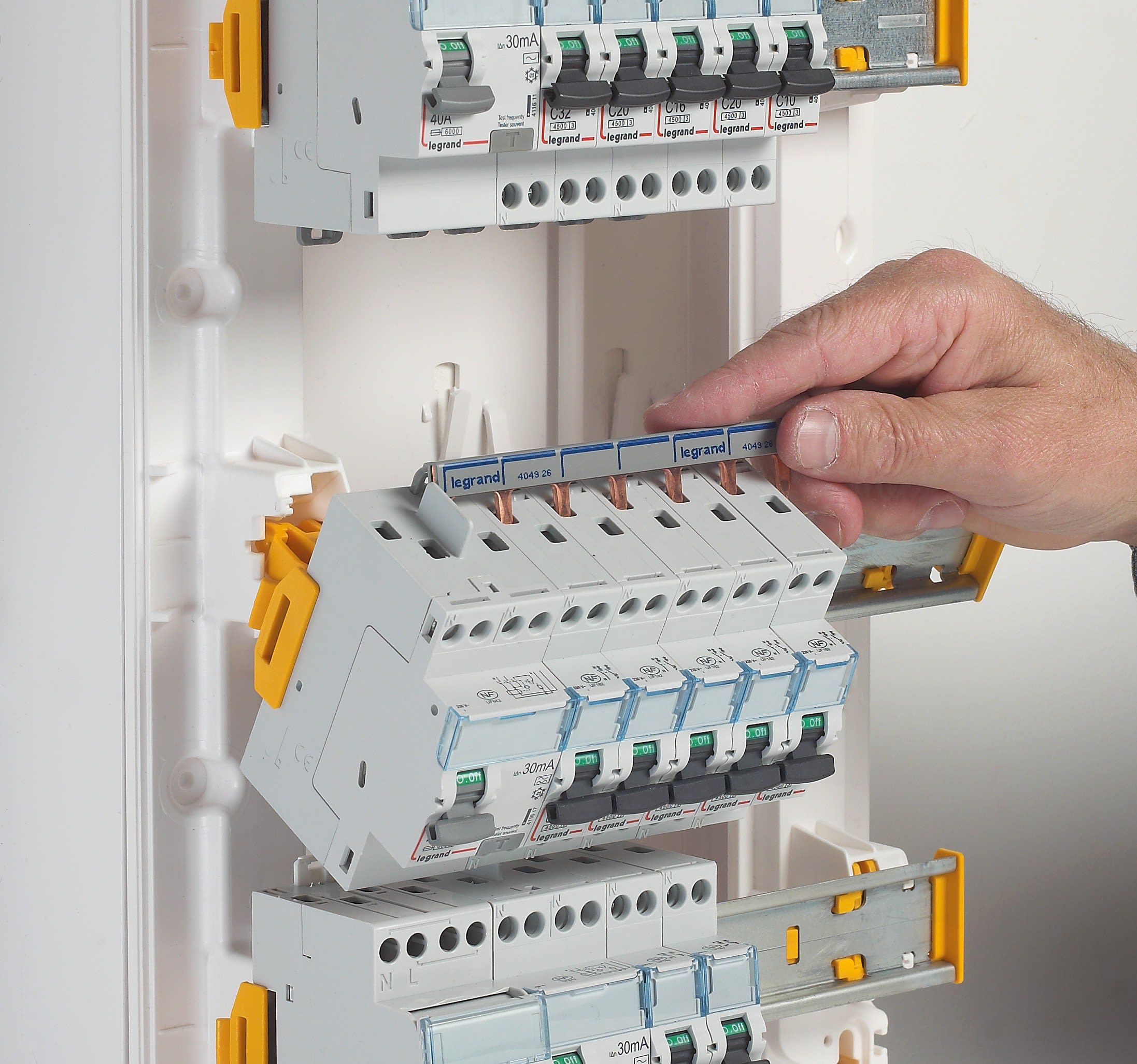 Tableau électrique et coffret de communication DRIVIA™ : complet et innovant. Les coffrets 13 et 18 modules par rangée peuvent être installés en résidentiel ou en petit tertiaire grâce à sa conformité à la réglementation des ERP (Etablissements Recevant du Public) et des IGH (Immeubles de Grande Hauteur). L'installation peut se faire directement au mur, ou sur goulotte GTL en saillie ou en encastré grâce aux connecteurs Drivia™ Clip. Il est également possible de jumeler des coffrets à la verticale ou à l'horizontale avec des cavaliers de liaison Drivia™ Easy. La fixation est facile et rapide grâce à l'accessoire DRIVIA clip qui permet une fixation du chassis du coffret sur la goulotte GTL et son réglage en hauteur. Le câblage dans le coffret est facilité grâce au rail extractible par simples clips latéraux et par les rails inclinables en position basse ou haute pour accès facilité au connectiques des produits. Le coffret de communication DRIVIA permet la répartition des médias dans la même esthétique que le tableau électrique pour plus d'homogénéité dans le logement : différentes compositions (en kit ou vrac) sont proposées à la vente.