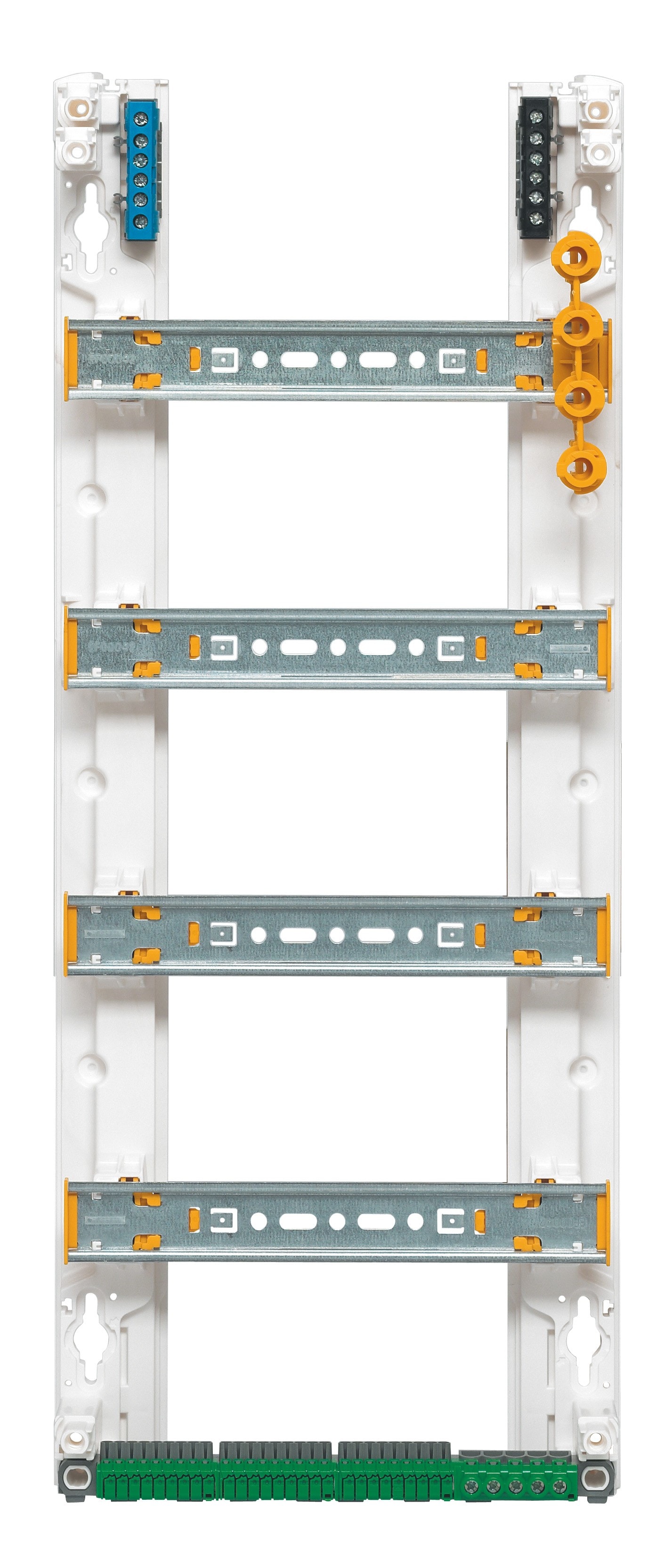Coffret Drivia 4 rangées de 18 modules - 625x355x103,5mm Livré avec :- bornier à connexion automatique IP2X pour conducteurs de protection - 1 bornier Phase et 1 bornier Neutre IP2X- obturateurs séparables par module et demi-module- accessoires de pré-fixation sur goulotte GTL (ou sur mur) Drivia clip- accessoires de jumelage horizontal/vertical (pour 2 coffrets ou coffret + platines) Drivia easy- porte plans adhésif - planche d'étiquettes et bandeau de repérage des appareils modulaires- 1 porte-étiquette par rangée IP30 - IK05 (IP40 - IK07 avec porte) - Classe II avec plaques de fond isolantes - Blanc RAL9003 Espace sous rails : 40mm - Entraxe entre rails : 125mm Auto-extinguibilité : tenue au fil incandescent 750°C conforme à la réglementation des ERP (Etablissements Recevant du Public) et des IGH (Immeubles de Grande Hauteur) selon la norme NF EN 60 695-2-11 - Conforme à la norme IEC 60670-24 - Conforme à la norme IEC 62 208 : permet de réaliser des ensembles conformes à l'IEC 61 439-3