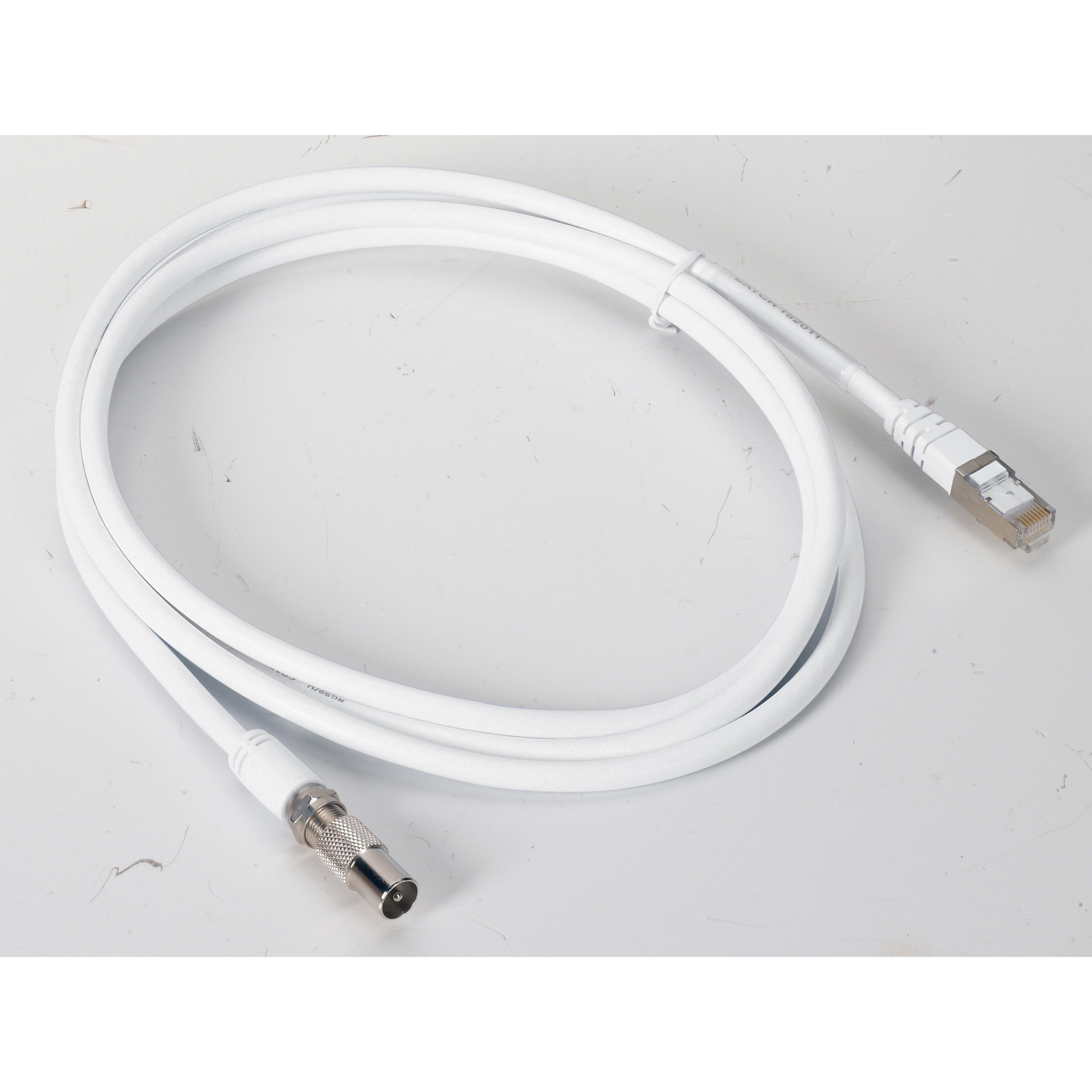 Cordon coaxial IEC-F/RJ45 pour raccorder un téléviseur Livré avec accessoire pour adaptation sur IEC Ø9,52mm Longueur 2m
