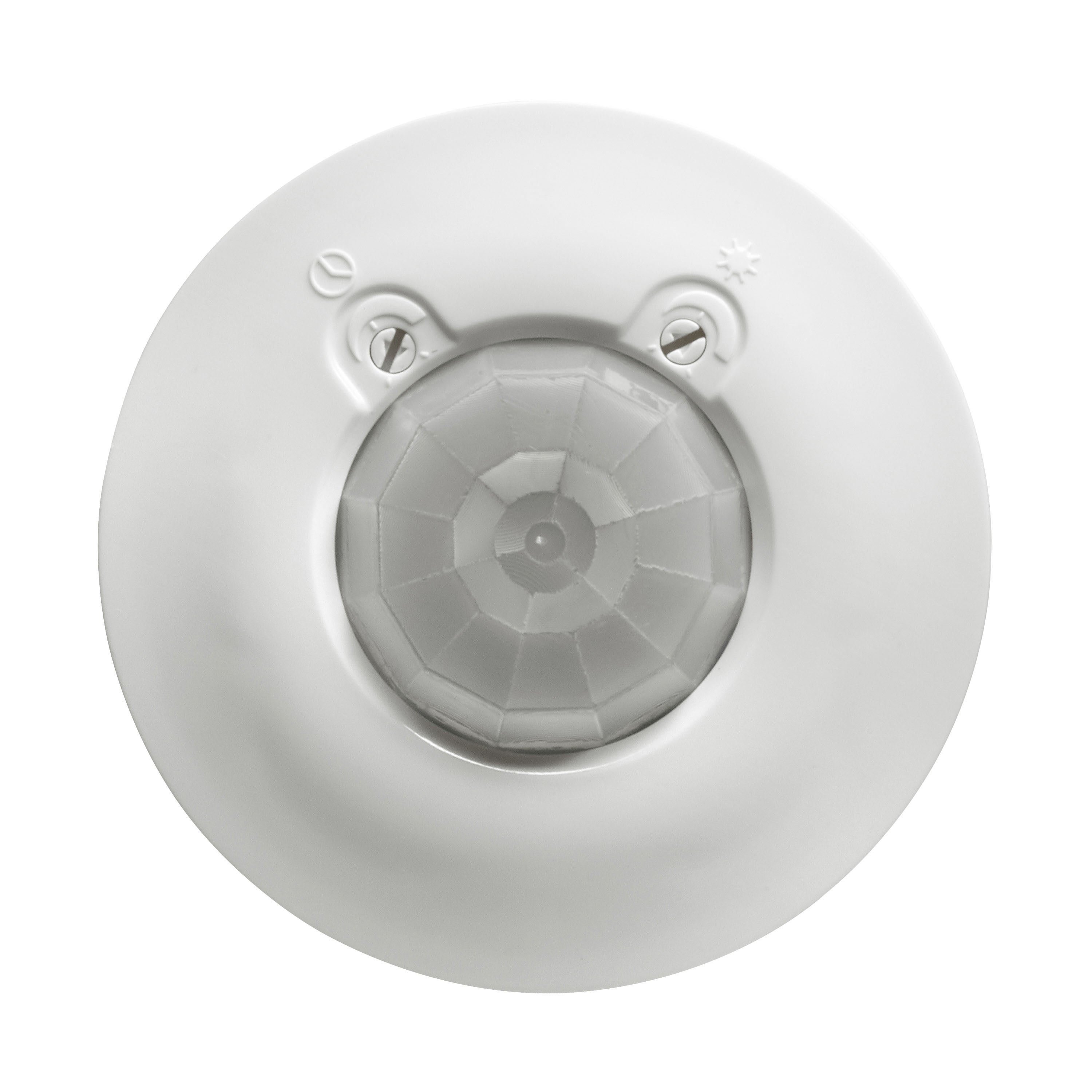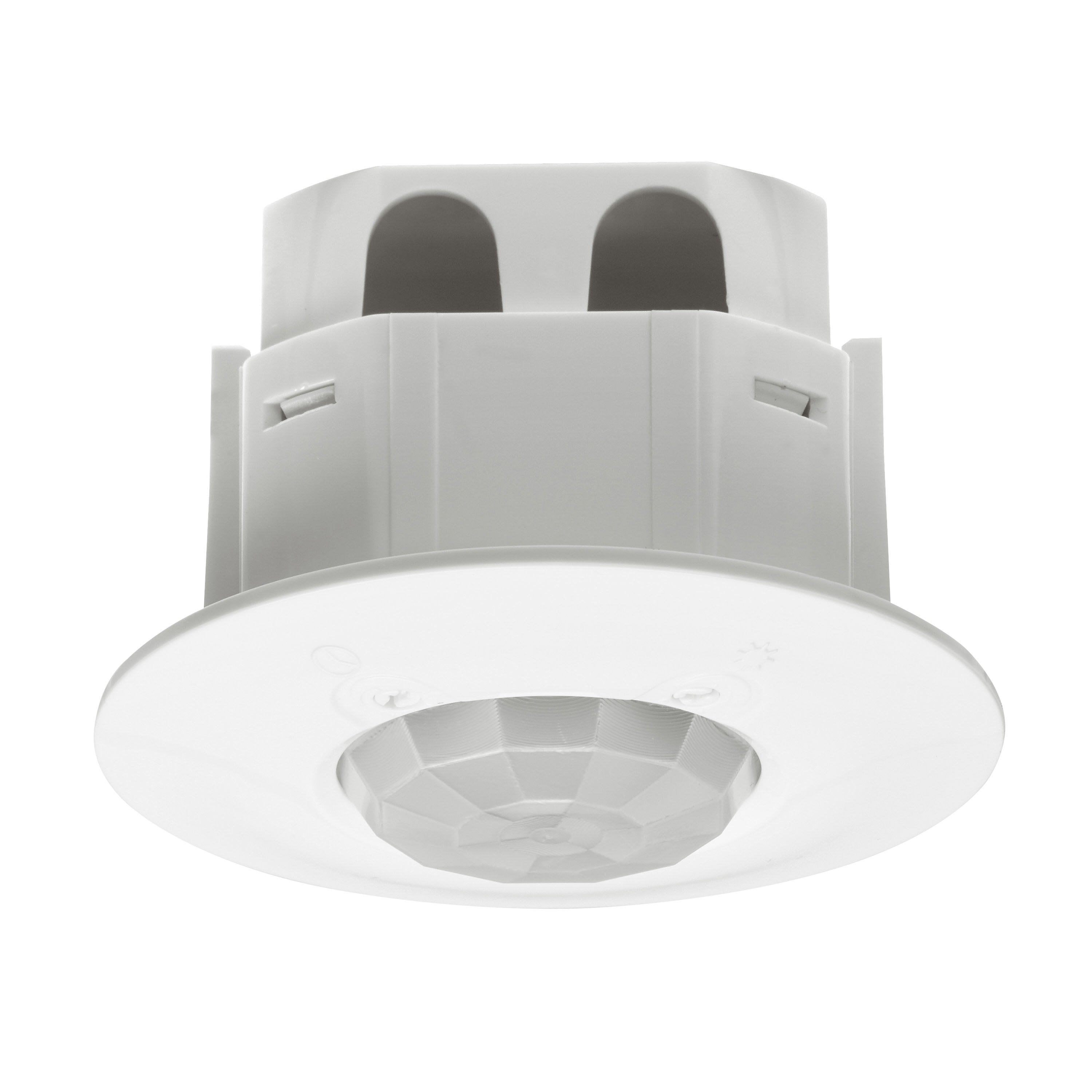 Détecteur de mouvement infrarouge 360° 3 fils avec neutre IP41 Réglage manuel par potentiomètre du seuil de luminosité et de la temporisation :- seuil de luminosité : 10 lux à 1275 lux- temporisation réglable de 10 secondes à 10 minutes Allumage et extinction automatiques - Consommation 0,5W en veille - Portée 8m Puissance acceptée par types de lampes (compatible avec toutes les lampes du marché) :- LEDs : 250W- Fluocompactes : 250W- LEDs, CFLs, Halogène avec ballast ferromagnétique ou électronique : 1000 VA- tubes fluo : 10x(2x36W)- Halogènes 230V, incandescent : 2000W Livré complet pour fixation au plafond