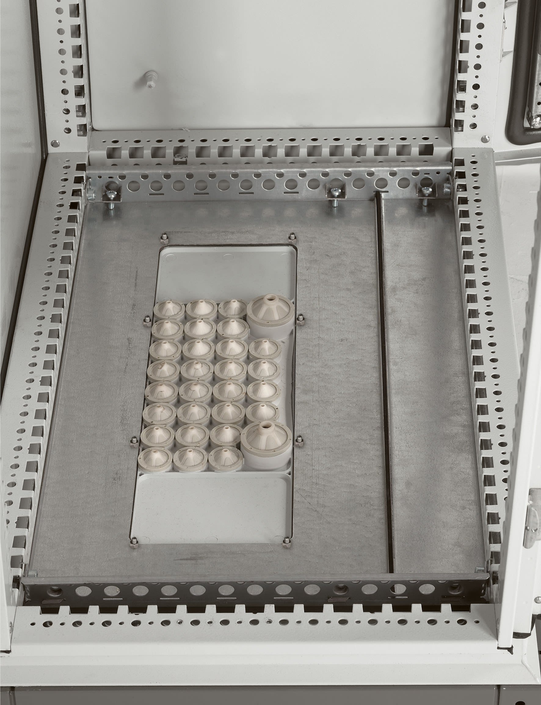Plaque Cabstop IP55 en polypropylène ignifugé RAL7035 Pour armoire Altis métal :- largeur 800mm- profondeur ≥ 400mm Entrée de câbles constituée d'une mâchoire serre-câbles assurant la tenue mécanique et de zones élastomères assurant l'étanchéité Entrée Ø5 à 14 équivalent presse étoupe ISO16/20 et presse étoupe PG9/11/13/16 - Entrée Ø14 à 24 équivalent presse étoupe ISO25/32 et presse étoupe PG21/22 Plaque obturatrice à commander séparément à partir de profondeur 500mm - Livrée avec bouchons d'étanchéité permettant d'obturer une entrée percée tout en garantissant l'IP55 et outils de débrayage du câble - Livrée avec visserie et joint