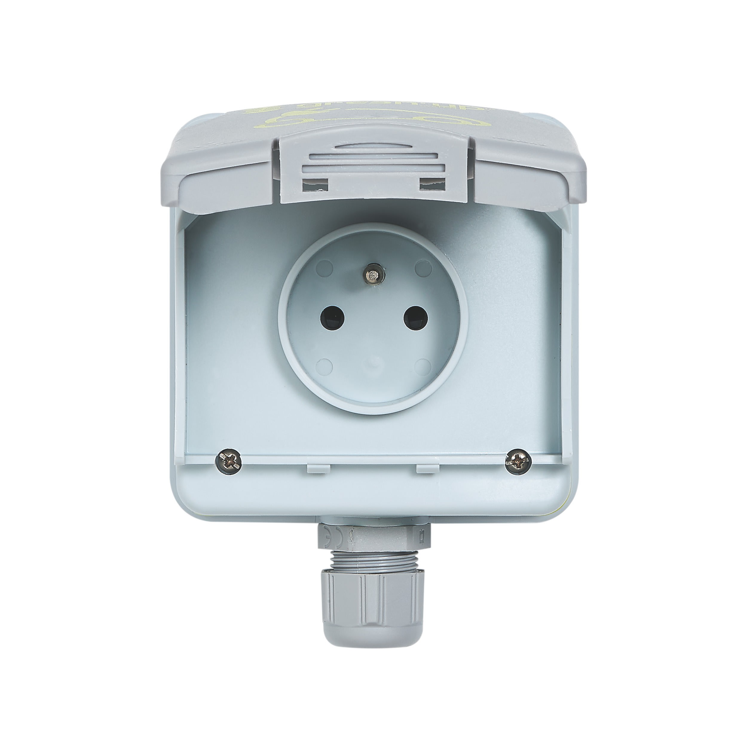 Prêt-à-poser prise Green'up Access composé de : - 1 prise renforcée Green'up Access plastique (pour installation en saillie) avec volet, IP66 - IK08 - 16A - 230V homologuée 16A véhicule électrique- 1 patère de suspension référence 090478 pour le boîtier de contrôle du cordon de recharge- 1 disjoncteur différentiel 20A - courbe C - 30mA - typeF (ex Hpi) référence 410754 Prise Green'up Access, capacité de raccordement 6mm² Raccordement à partir du tableau électrique par 1 ligne dédiée 3x2,5mm² minimum (1 ligne par prise) avec protection par disjoncteur différentiel fourni Convient aux lieux de vie type maison individuelle et lieux de travail Conforme aux normes IEC 60884-1, NF C 61-314