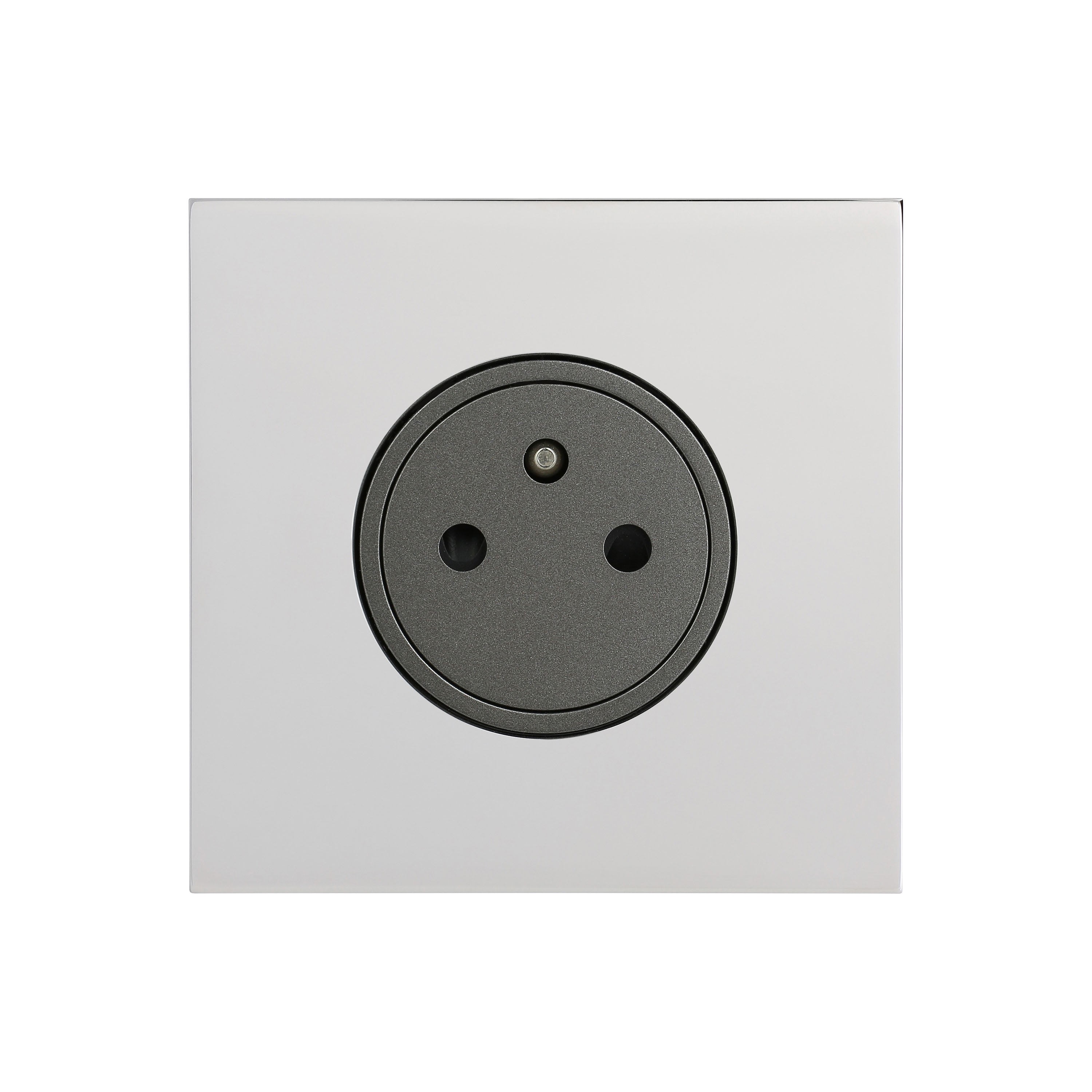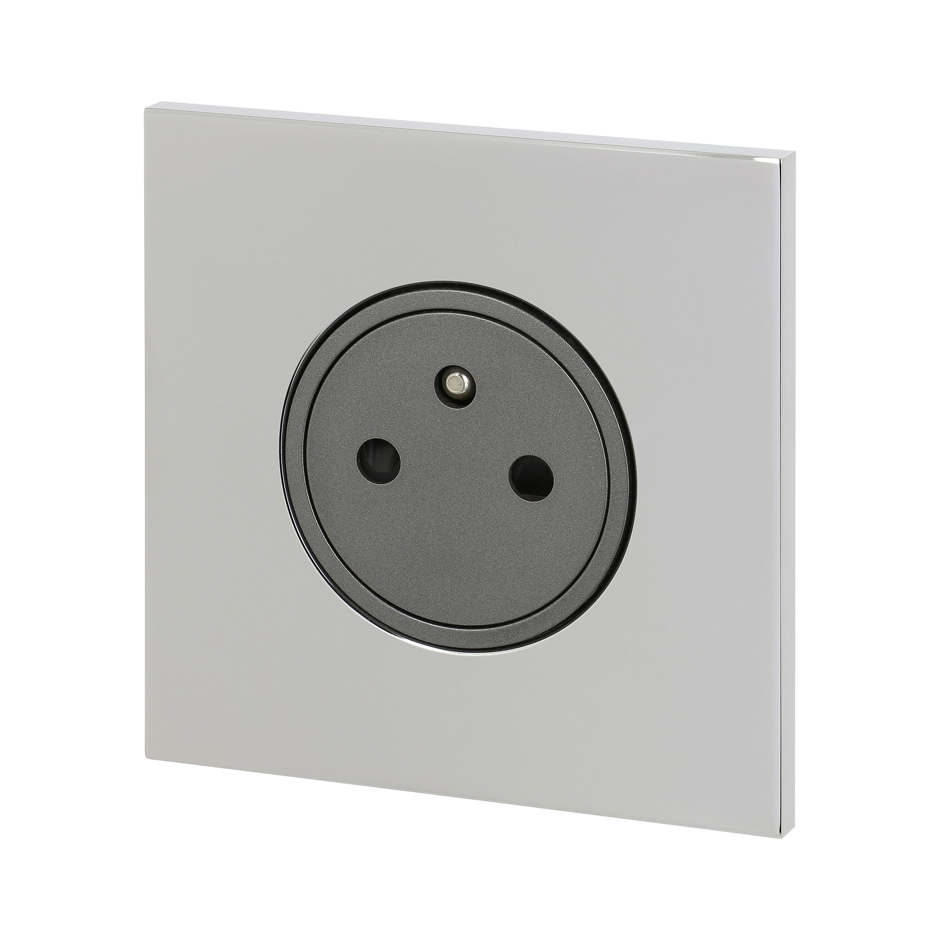 Prise 2P+T Surface gris magnésium 16A - 250V Art d'Arnould Univers Epure Acier miroir Dimensions grand carrée 80x80mm Se monte dans boîte d'encastrement 1 poste