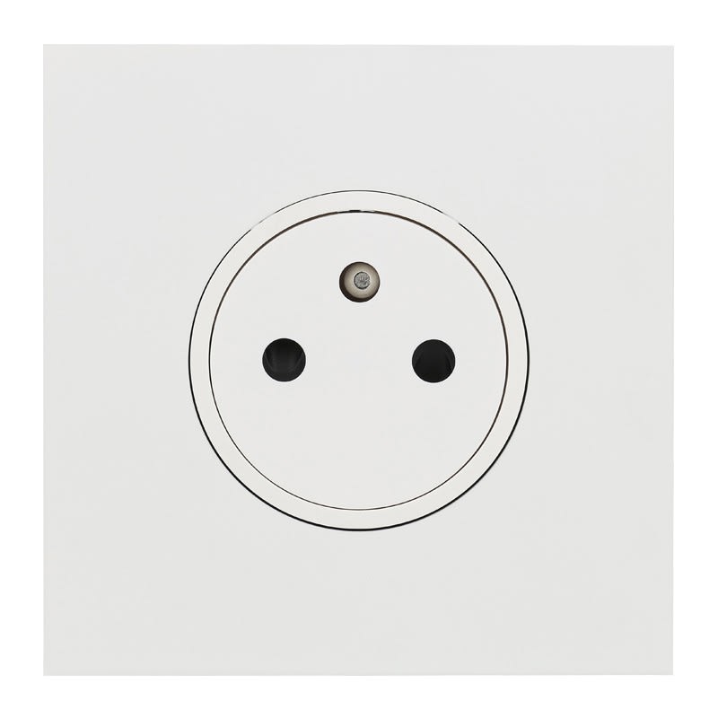 Prise 2P+T Surface blanc 16A - 250V Art d'Arnould Univers Epure Blanc satin Dimensions grand carrée 80x80mm Se monte dans boîte d'encastrement 1 poste