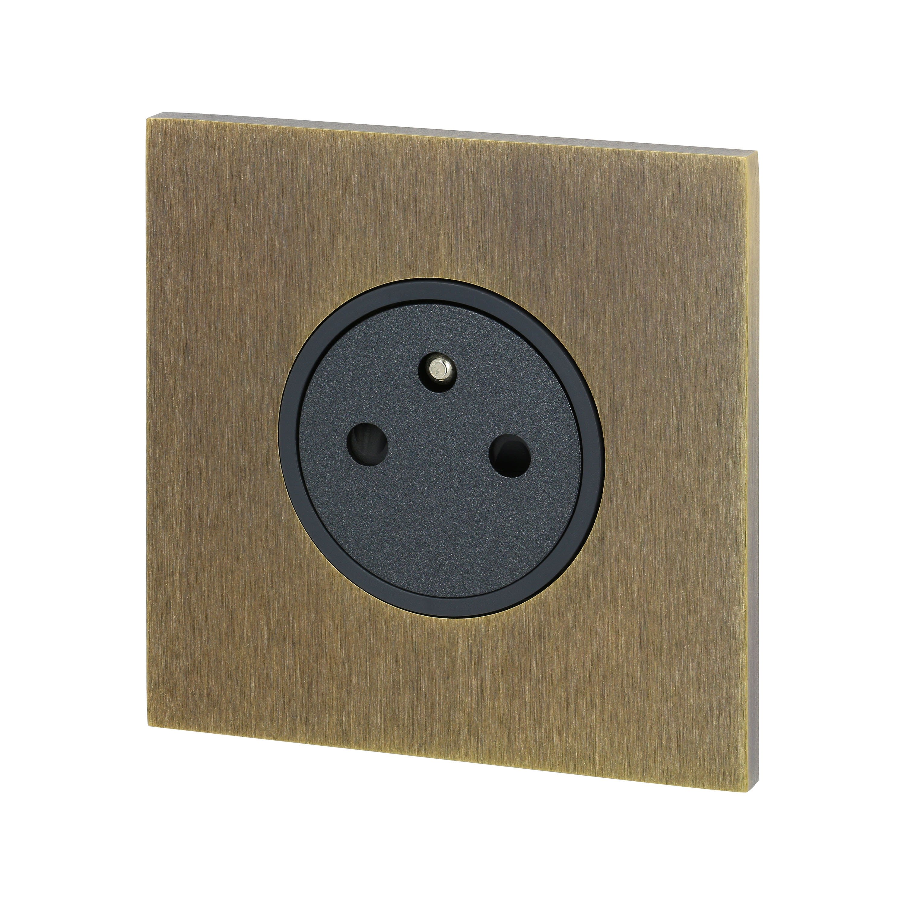 Prise 2P+T Surface anthracite 16A - 250V Art d'Arnould Univers Epure Bronze Dimensions grand carrée 80x80mm Se monte dans boîte d'encastrement 1 poste