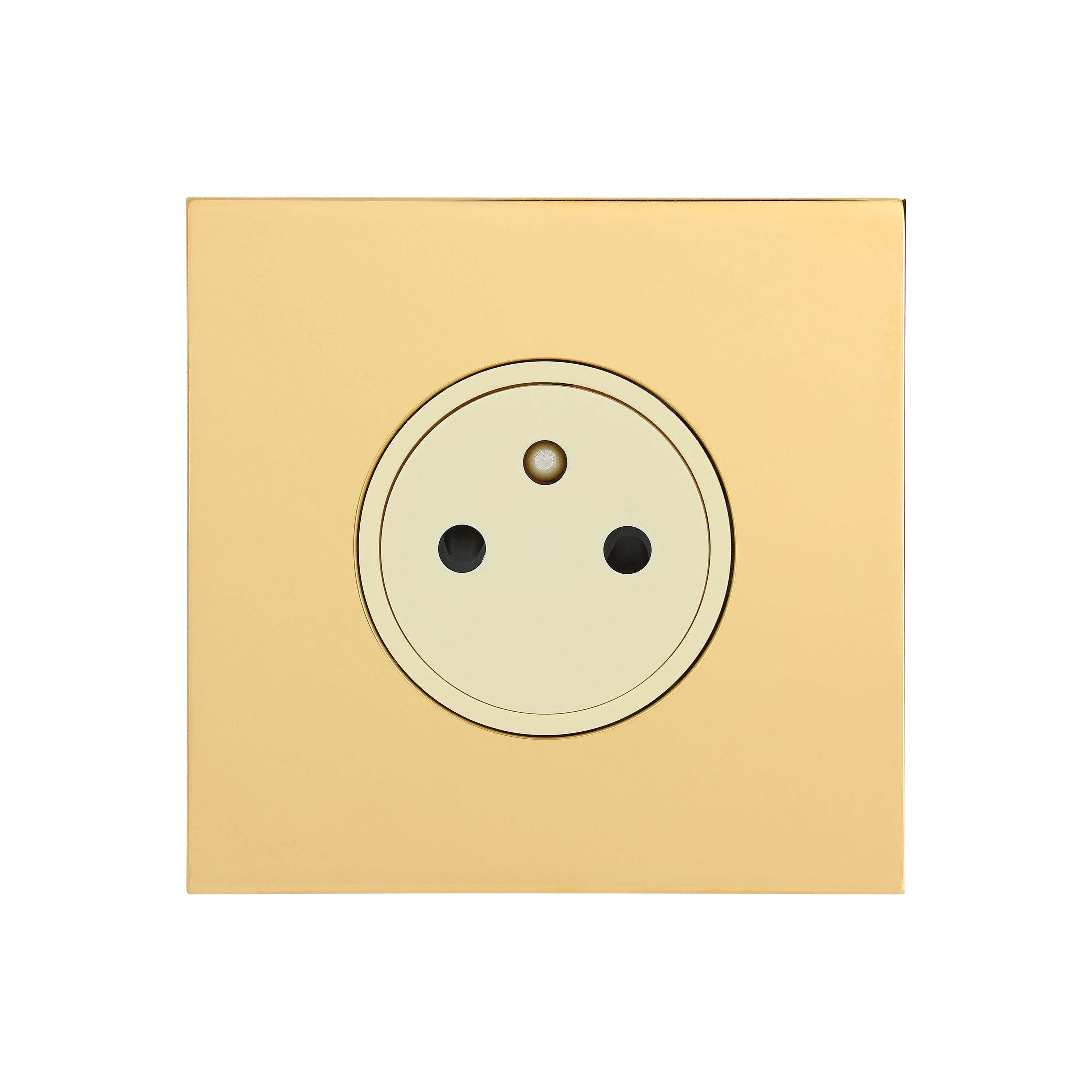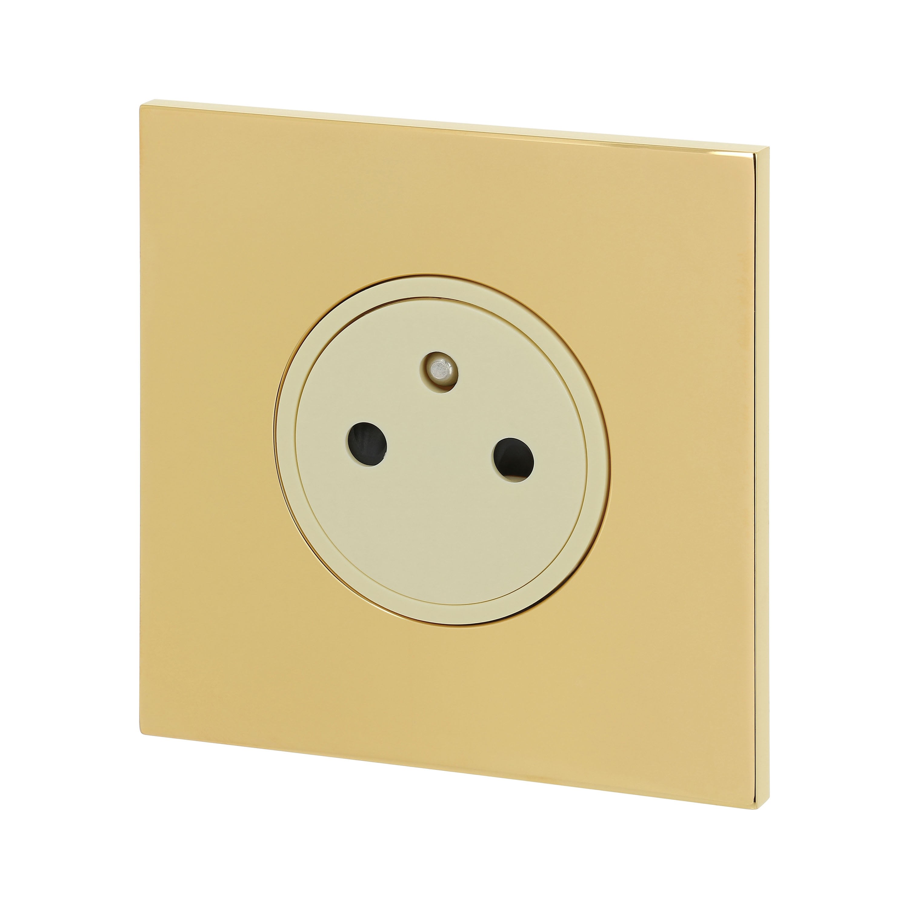 Prise 2P+T Surface 16A - 250V Art d'Arnould Univers Epure Or miroir Dimensions grand carrée 80x80mm Se monte dans boîte d'encastrement 1 poste