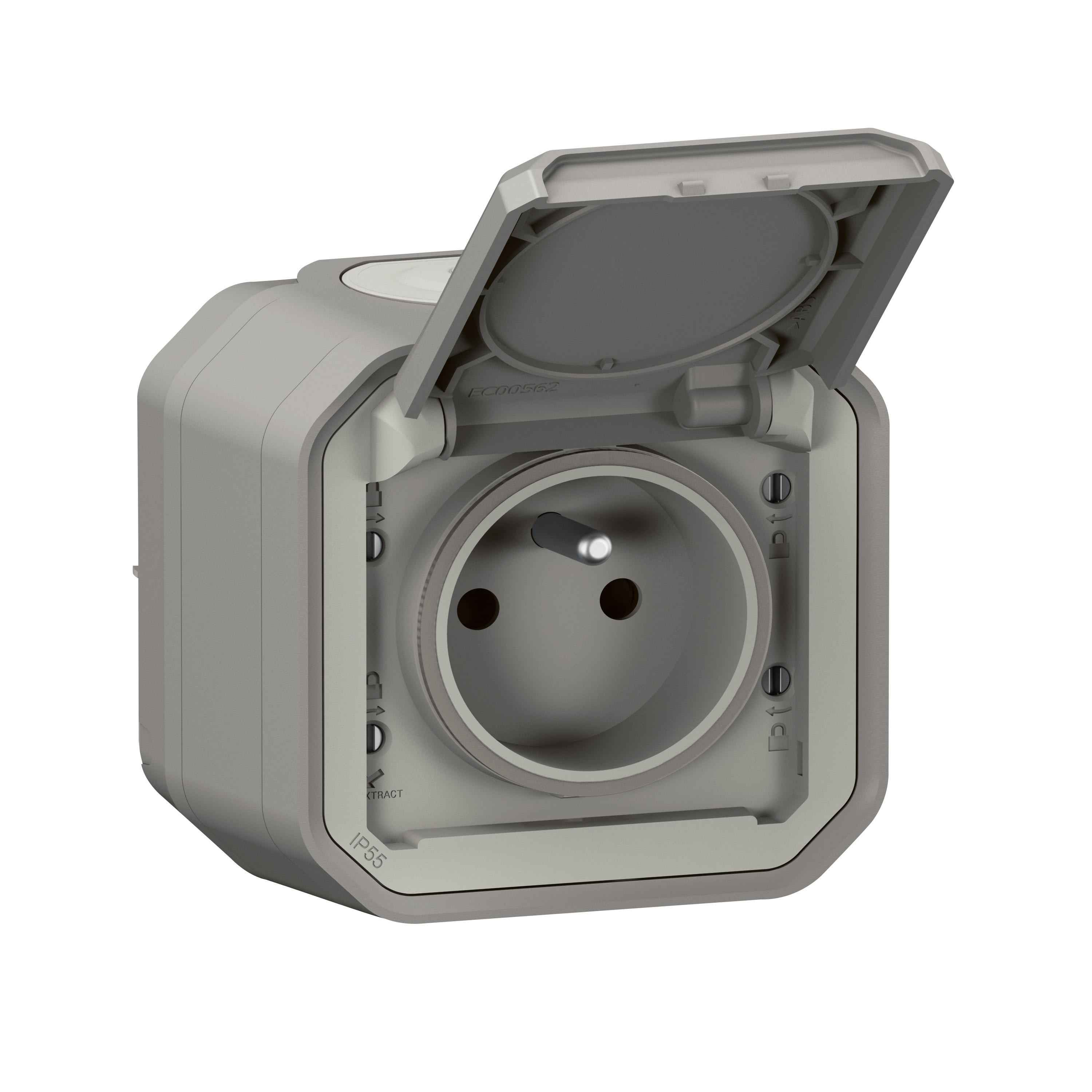 Legrand - Prise de courant 2P+T Plexo complet saillie gris - 069731L