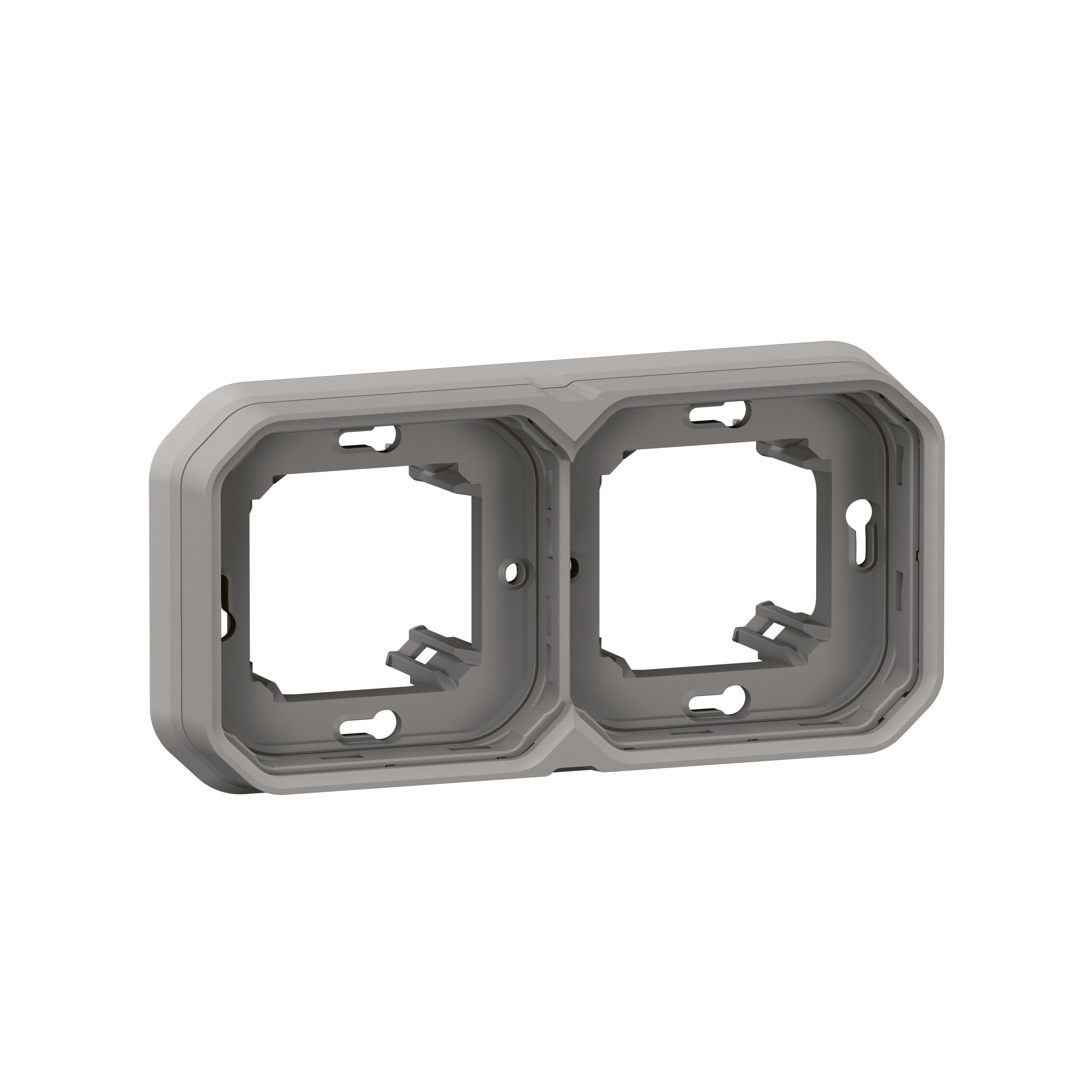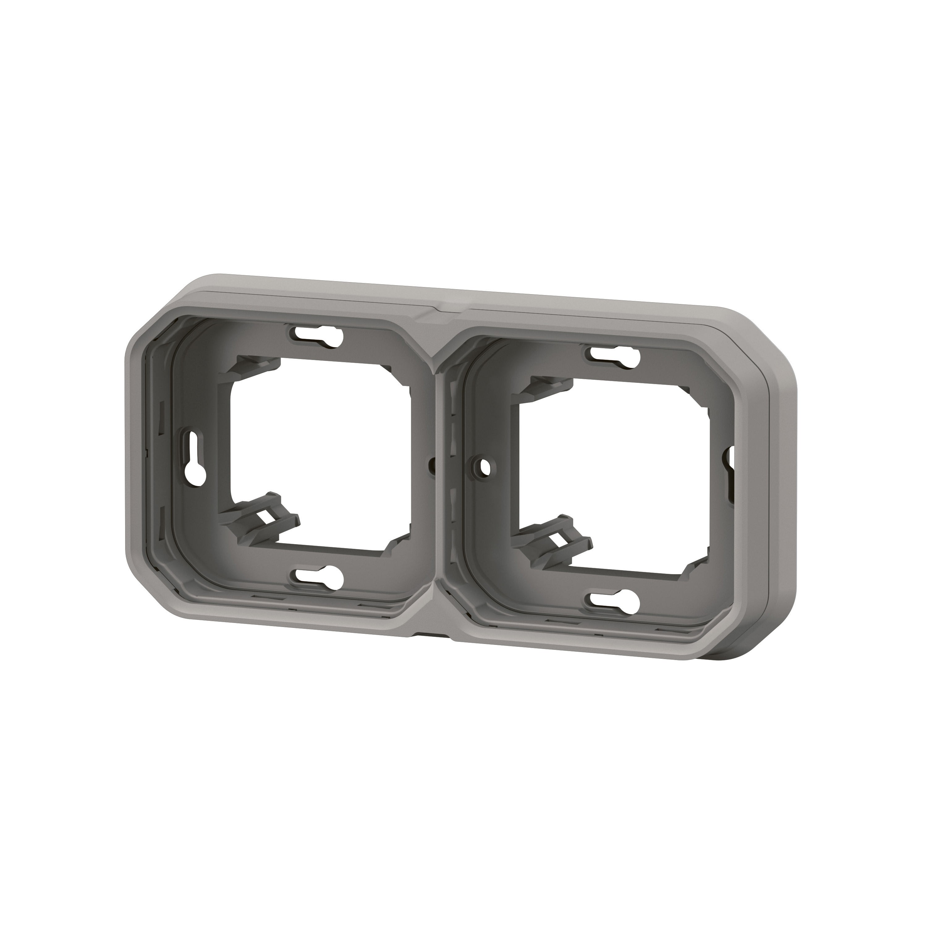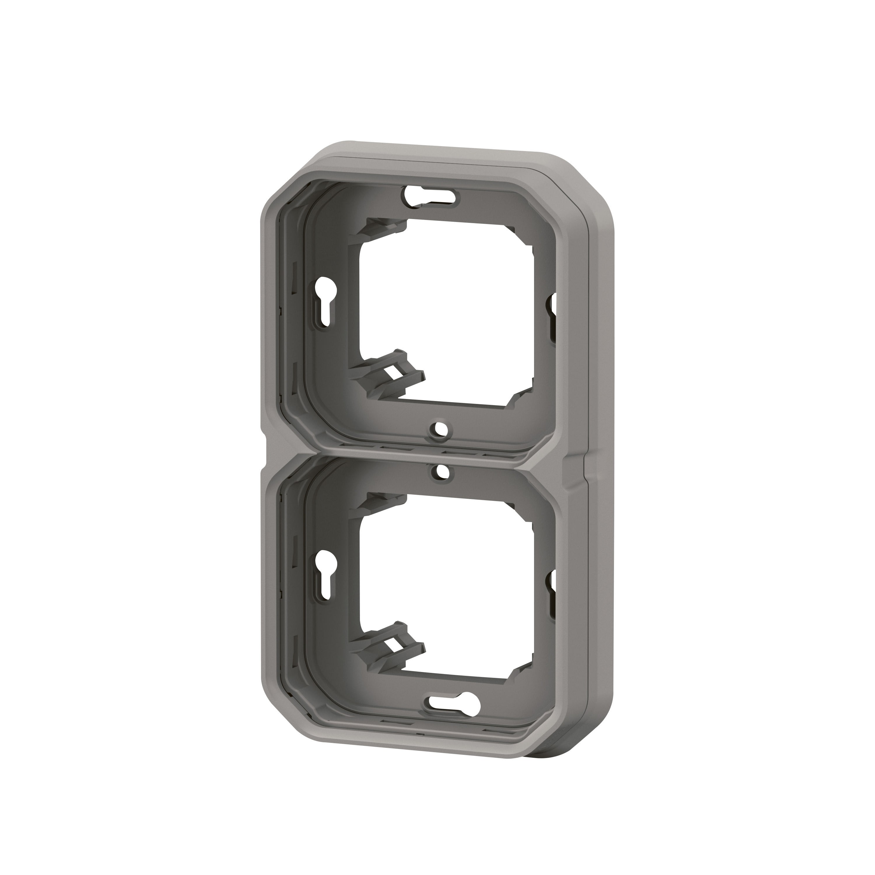 Support encastré sur lequel sont installés les produits livrés en mode composable IP55 : protégé contre les poussières et les projections d'eau à la lance de toutes directions 2 postes Gris