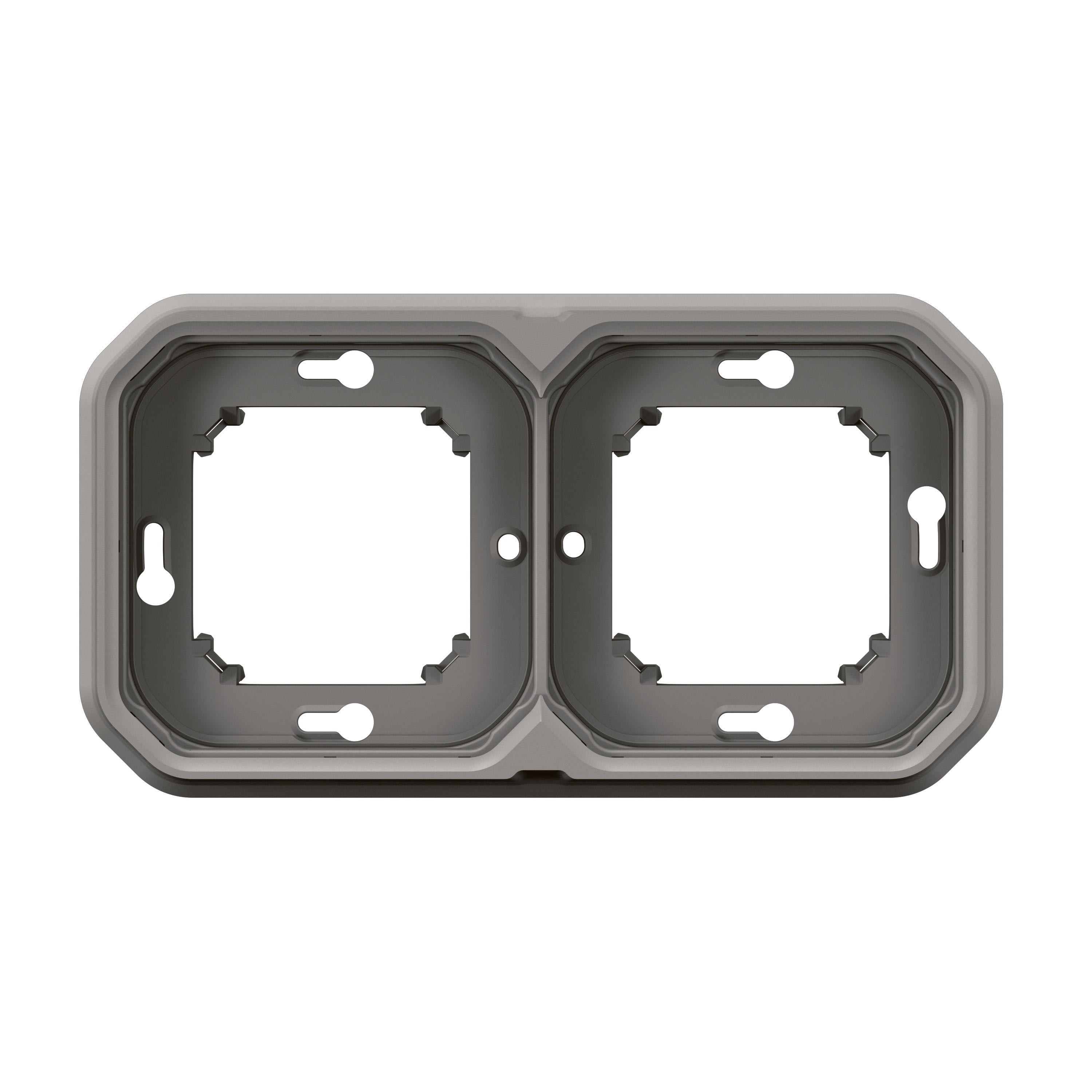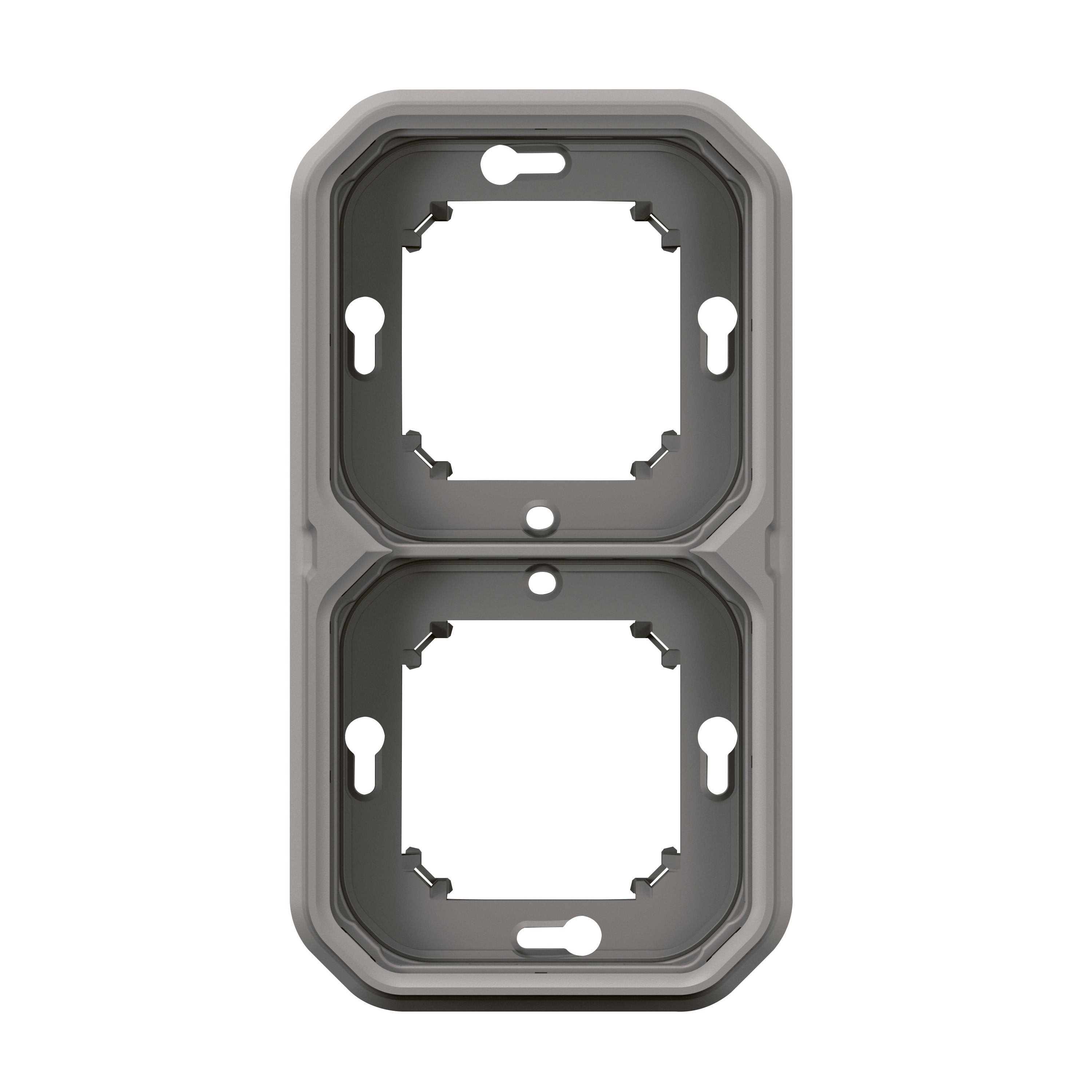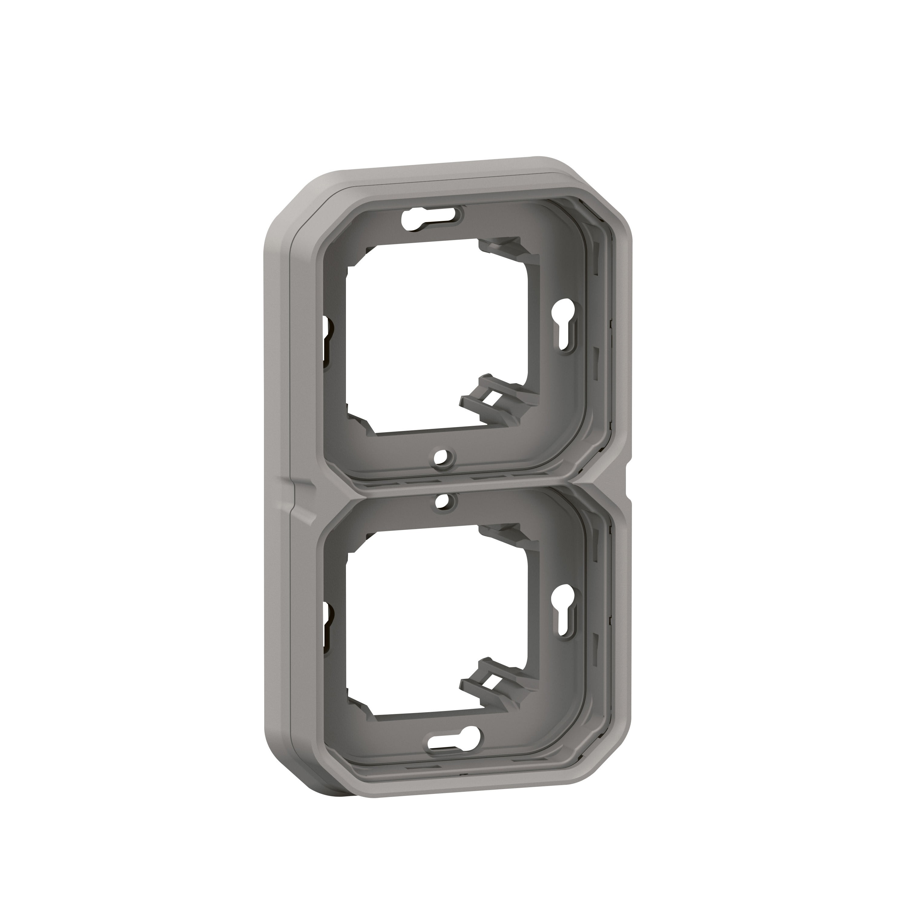 Support encastré sur lequel sont installés les produits livrés en mode composable IP55 : protégé contre les poussières et les projections d'eau à la lance de toutes directions 2 postes Gris