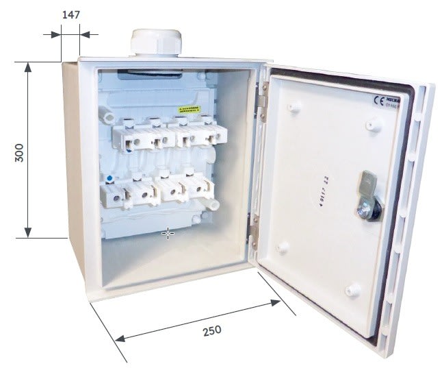 Le coffret d'exploitation intègre un coupe-circuit tétrapolaire IP2X.