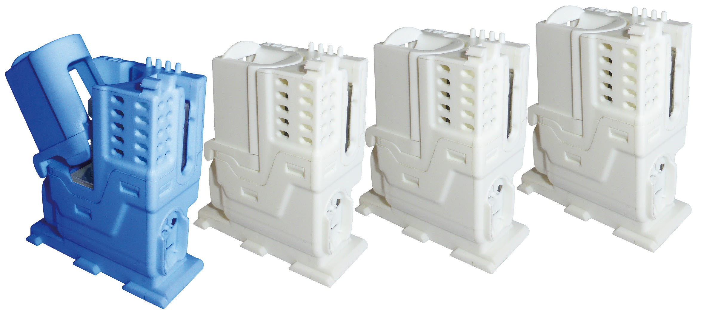 Ensemble de 4 CPF 60A universels (1 bleu pour le neutre et 3 blancs pour les phases) permettant de réaliser 1 branchement triphasé.