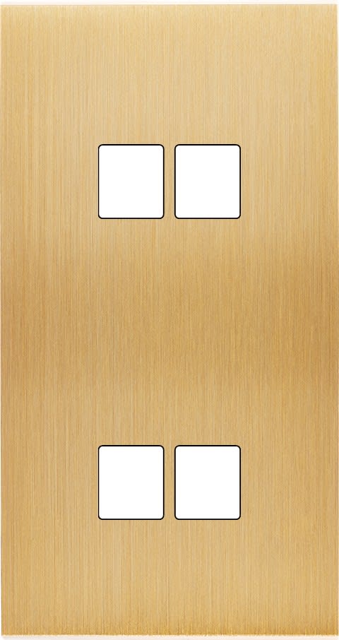 Laiton massif 5mm - 151x80mm, horizontal ou vertical - 12 finitions disponibles et plus de 50 fonctions - Montage sur boîtiers standards profondeur 50mm - Montage aimanté ou à vis