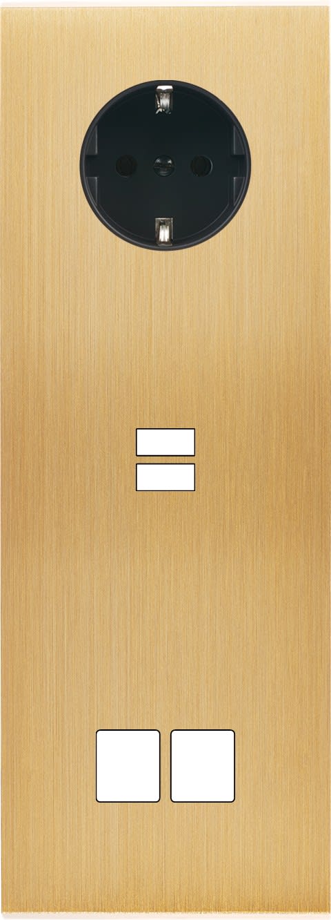 Façade Confidence en laiton massif finition Brossé triple verticale prise schuko 2P+T ouverture pour chargeur double USB 2 média