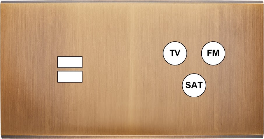Façade Confidence en laiton massif finition Vieux Bronze double horizontale ouverture pour chargeur double USB 1 TV-FM-SAT