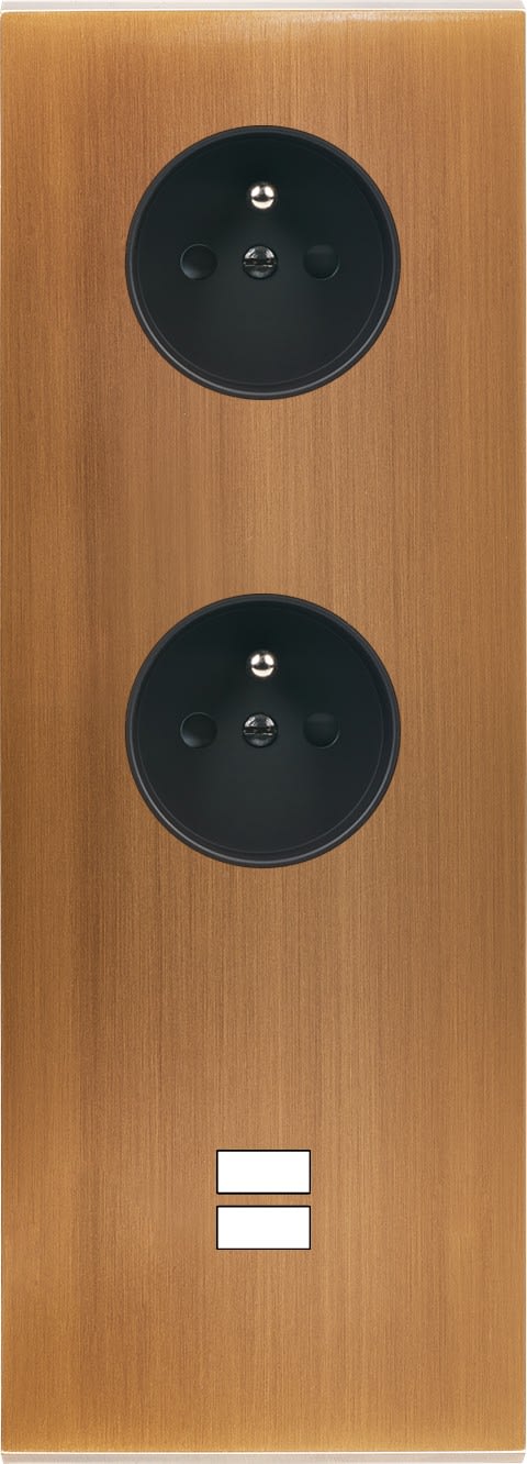 Façade Confidence en laiton massif finition Vieux Bronze triple verticale prise de courant 2P+T prise de courant 2P+T ouverture pour chargeur double USB