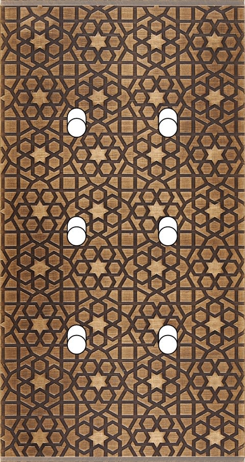Façade Fascination en laiton massif finition Atlas double verticale 6 basculeurs magnétique. Dimensions : 80x151x5mm, deux chanfreins biseautés. Fabriqué en France, dans les ateliers de Steaven Richard.