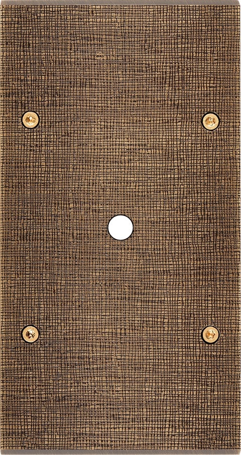Façade Fascination en laiton massif finition Coslan double verticale 1 bouton poussoir PUSH à vis. Dimensions : 80x151x5mm, deux chanfreins biseautés. Fabriqué en France, dans les ateliers de Steaven Richard.