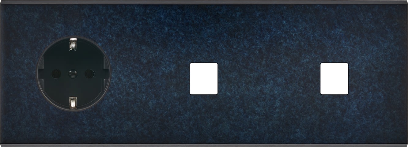 Façade Fascination en laiton massif finition Ombre triple horizontale 1 prise Schuko 1 Media 1 Media . Dimensions : 222x80x5mm, deux chanfreins biseautés. Fabriqué en France, dans les ateliers de Steaven Richard.