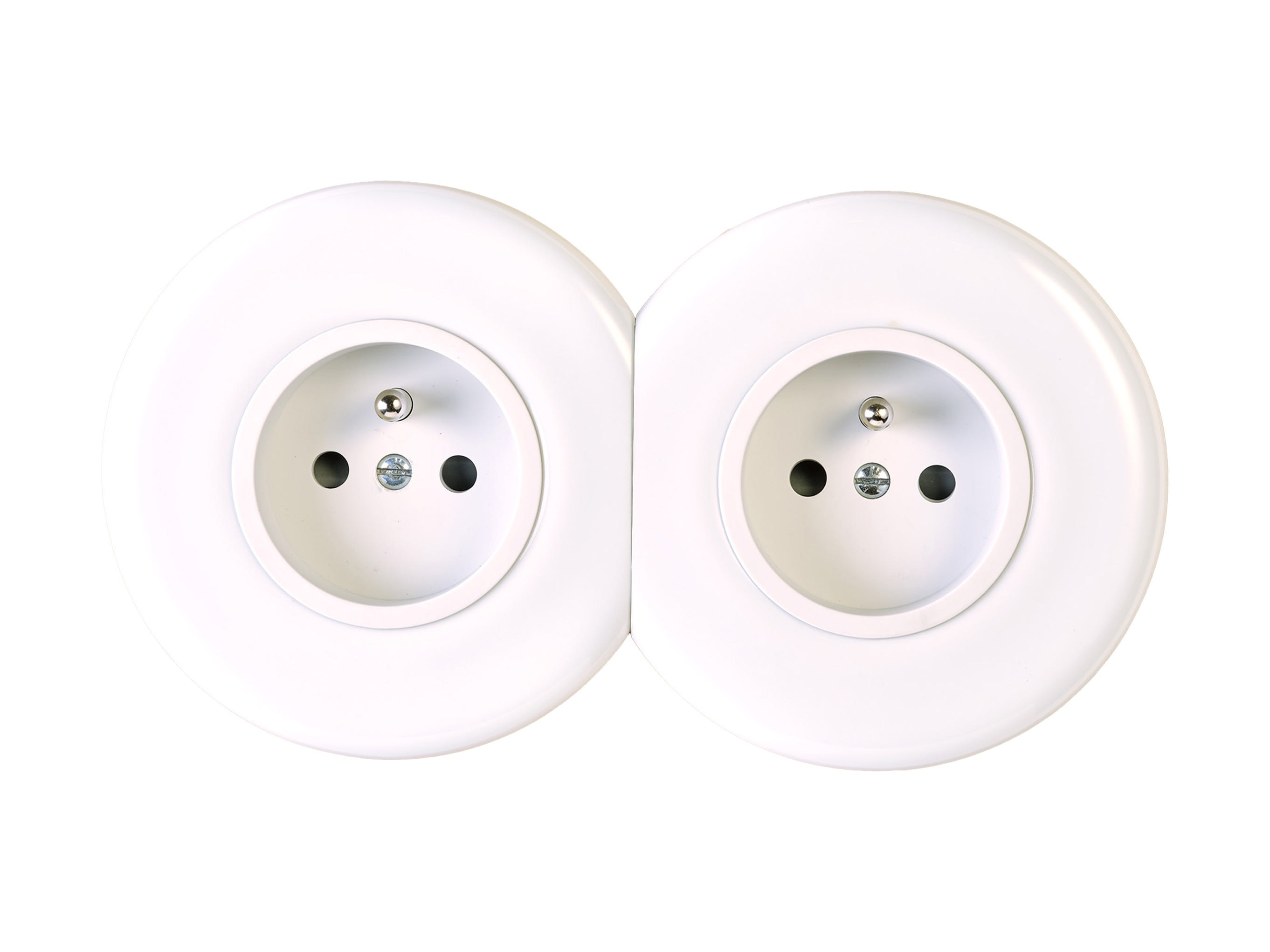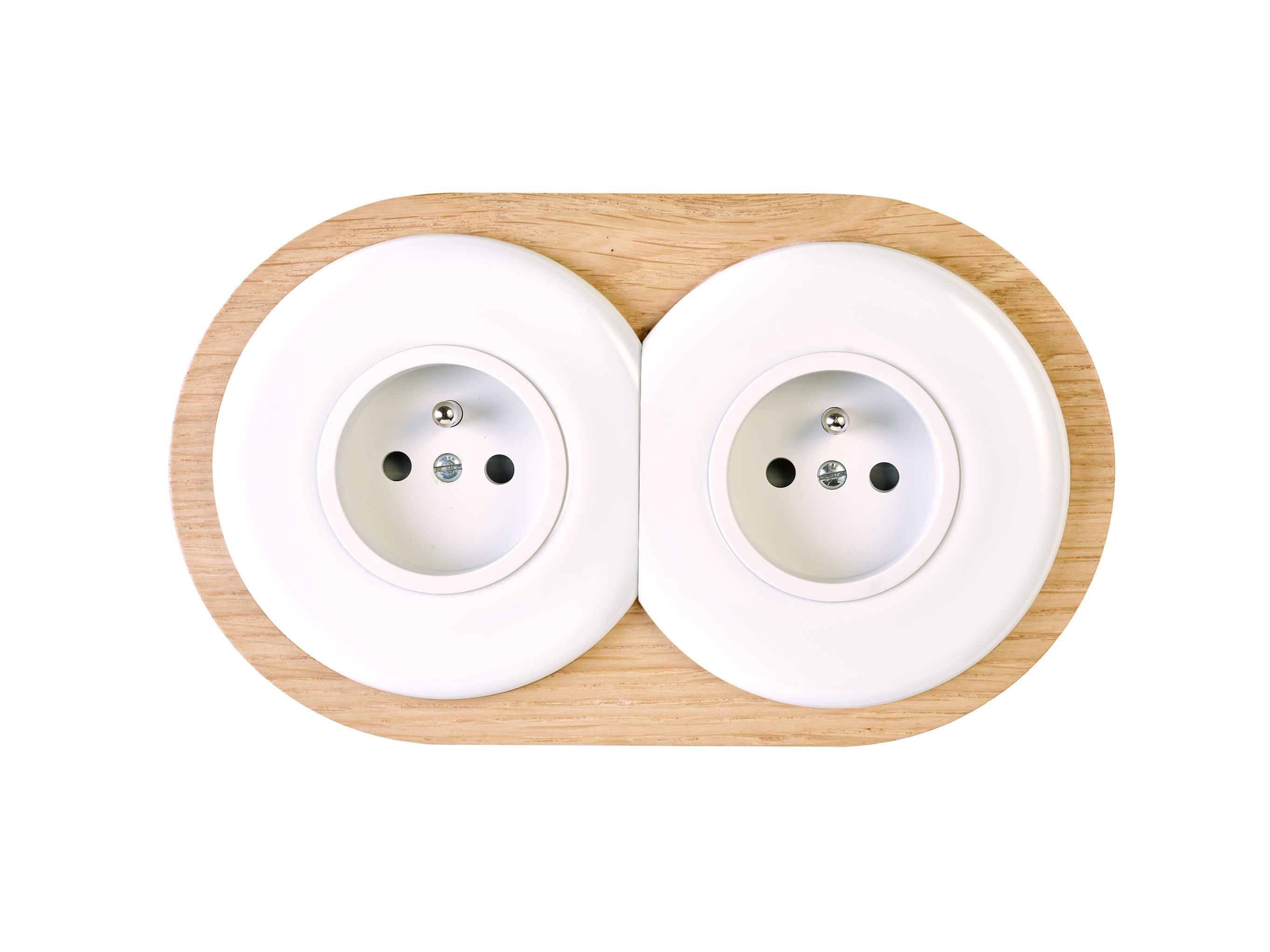 Façade Iris Porcelaine Blanche double horizontale 1 prise 2P+T + 1 prise 2P+T. À associer avec nos mécanismes et socles en bois doubles Iris by Modelec en porcelaine. Dimensions : 154x83x7mm