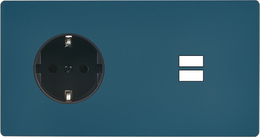 Façade "M" en aluminium finition Bleu Gris Mat double horizontale, 1 prise Schuko / 1 chargeur USB. Façade magnétique. Fabriquée en France.
