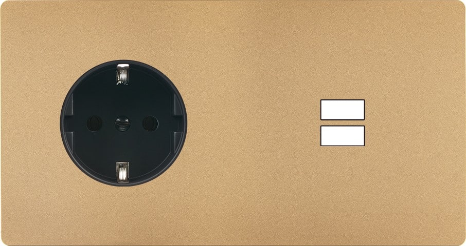 MODELEC - Façade "M" Laiton Sable Double Horizontal 1 Prise Schuko 1 Chargeur USB magnétiq - 259532M-K