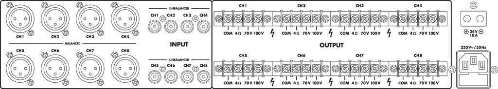 Amplificateur Public Adress 8 canaux, classe D