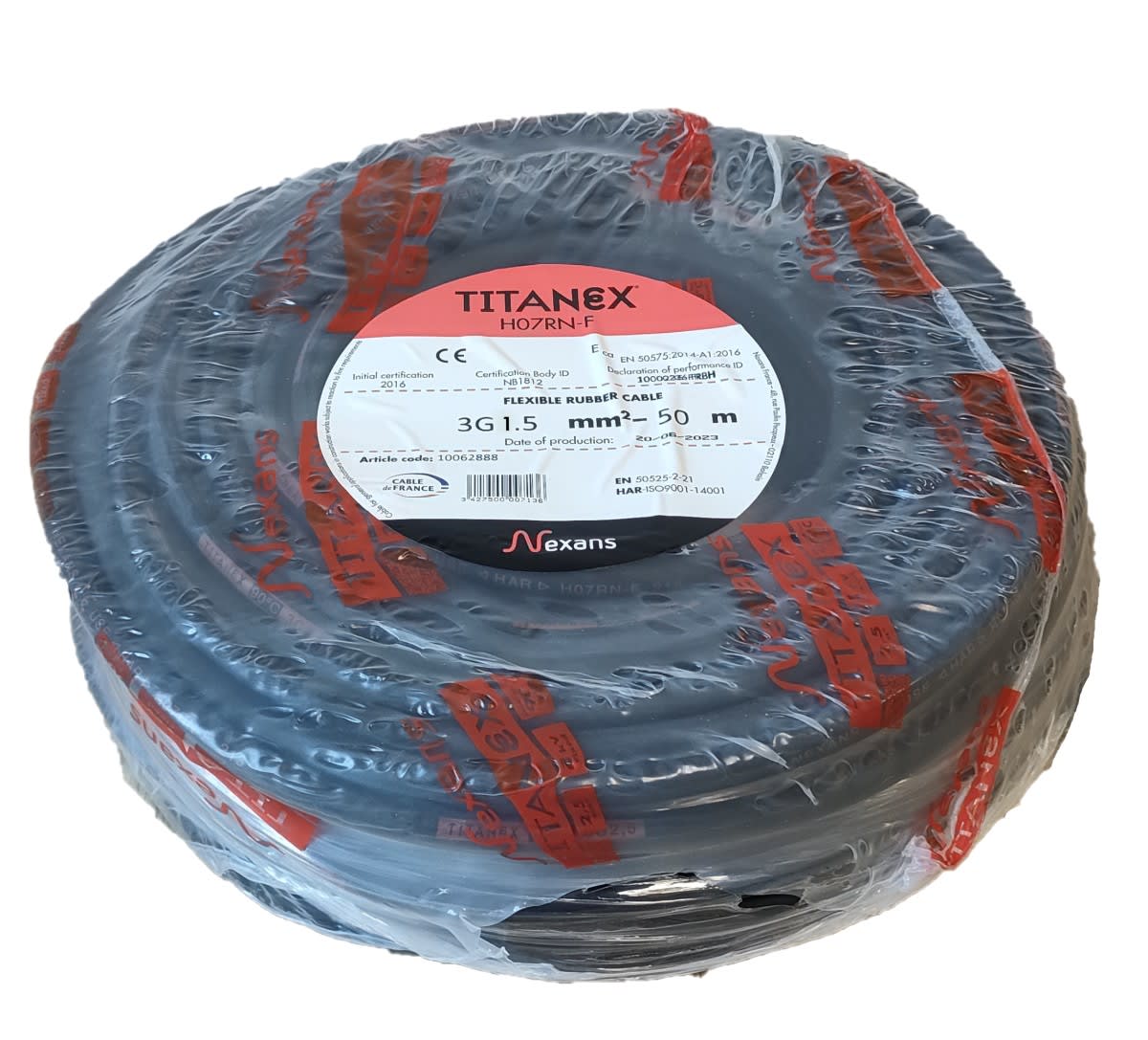 Le câble souple Nexans H07RN-F Titanex est destiné pour des applications industriels, de chantier de travaux publics, de forage, de genie climatique, d’automobile. Titanex est la référence dans le monde évènementiel grâce à son âme qui peut supporter jusqu’à 90°.