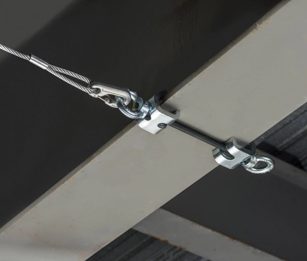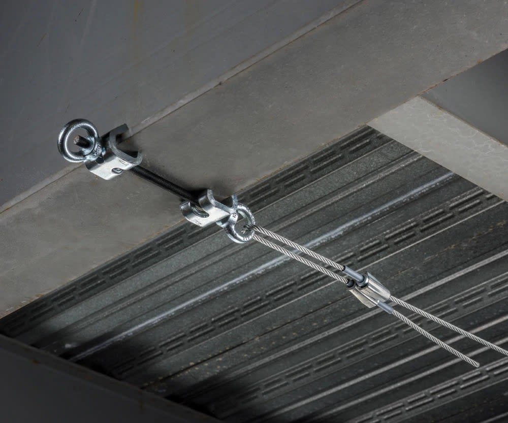 Câble tendu nVent CADDY Speed Link et accessoires de fixation. Charge utile 0-118kg. Facile à installer sur des composants structurels d'un bâtiment éloignés entre eux. Sécurité des personnes renforcée par un temps limité d'installation. Peu d'outillage.