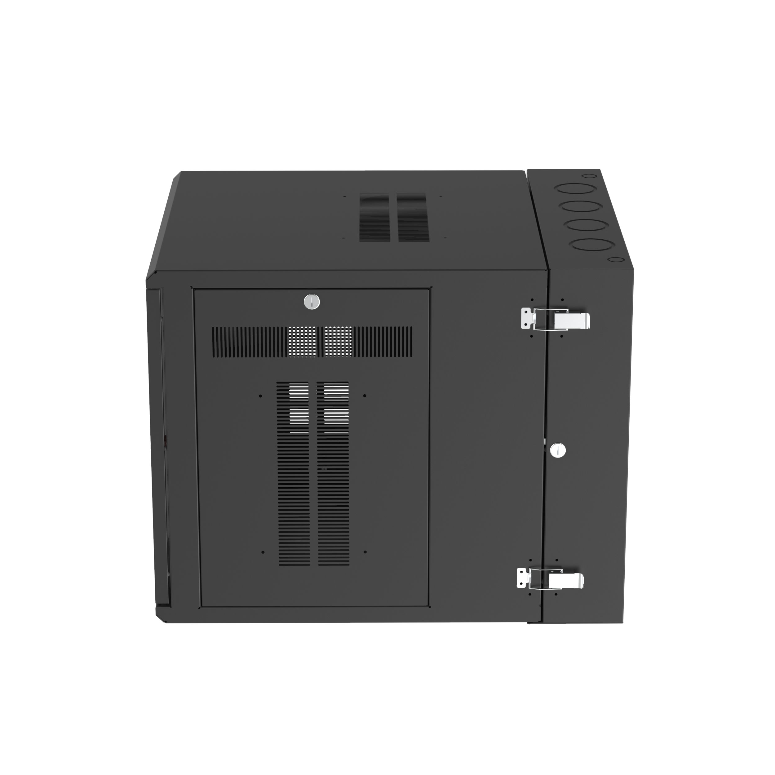 L'armoire à fixation murale PanZone™ est dotée d'une porte avec fenêtre de 762 mm de profondeur. Ses portes à charnière à l'avant et à l'arrière permettent un accès total à l'équipement réseau afin de faciliter les déplacements, ajouts et modifications. Les panneaux latéraux amovibles permettent un accès au routage de câble. Le boîtier permet un contrôle adapté de la température pour convenir à différents équipements réseau. Boîtier 12 U avec capacité de charge de max. 113,4 kg, noir.