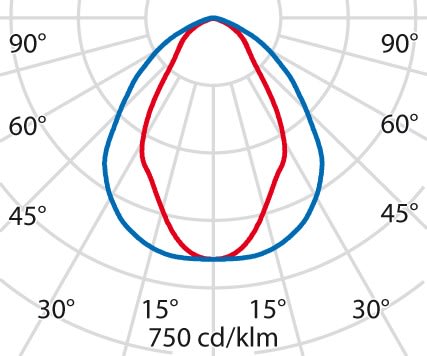 faible éblouissement selon EN 12464-1 (UGR Inf. à 19):