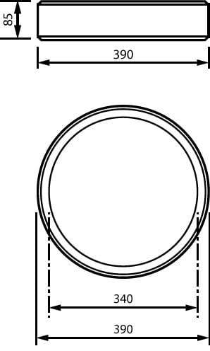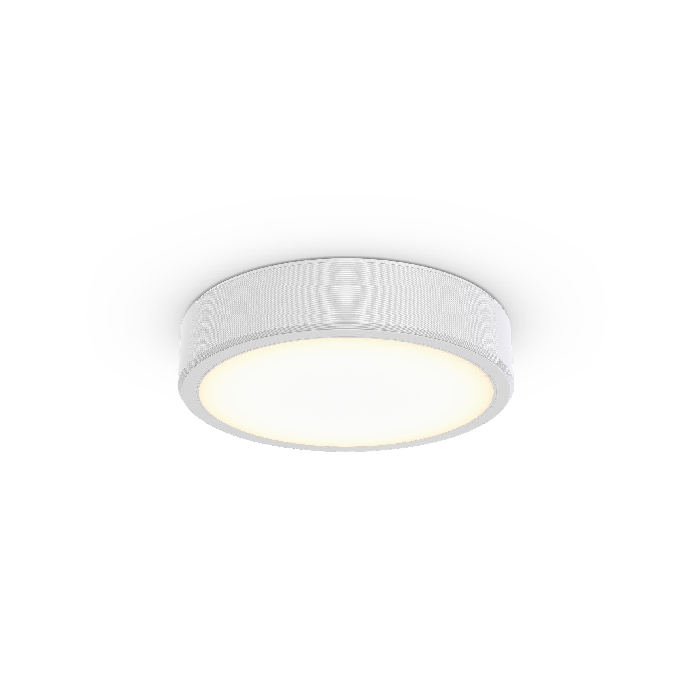 D390 mm; H85 mm, Polycarbonate, Blanc, Plafonnier, Système Interact Ready de gradation Dali, 1817 lm, 15.4 W, 118 lm/W, 3000 K, (0.44, 0.40) SDCM 3, CRI90, UGR19, Angle d’ouverture de faisceau 90°, Optique micro-hexagonale, Polystyrène, IP20 | Protection des doigts, IK04 | 0,5 J standard plus, Classe de sécurité II, 2 connecteurs à poussoir 5 pôles, Câblage traversant 1 phase, TP(b) diffuser flammability class