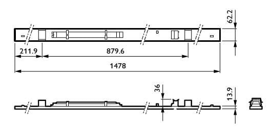 trunking light unit, 1478 mm, Acier, Blanc, Système Interact Ready de gradation Dali, 8000 lm, 48 W, 167 lm/W, 4000 K, (0.34. 0.35) SDCM 3, Faisceau intensif, Texturé, Polyméthacrylate de méthyle, IP20 | Protection des doigts, IK02 | 0,2 J standard, Classe électrique I, Unité de connexion 7 pôles