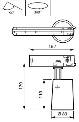 Track projector, Aluminium, Noir, Bloc d’alimentation électrique (Marche/Arrêt), 2700 lm, 22 W, 122 lm/W, 3000 K, (0.434,0.403)3, Faisceau extensif, IP20 | Protection des doigts, IK02 | 0,2 J standard, Classe de sécurité II, Rail 3C