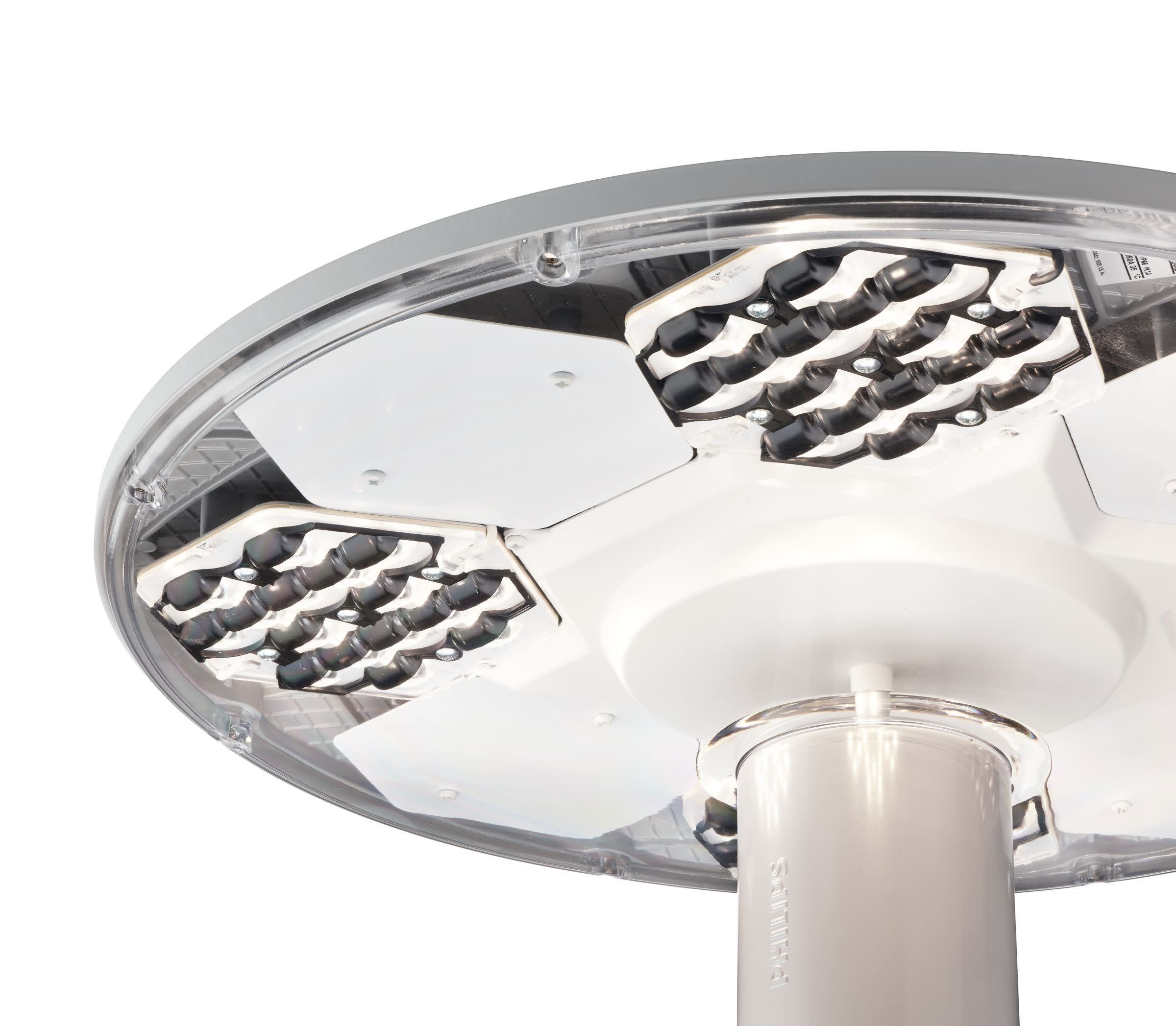 Nous accélérons l’extraordinaire potentiel de la lumière pour des vies plus agréables et un monde meilleur. La gamme TownGuide Performance est composée de six formes modernes caractéristiques : Cône plat, Vasque, Cône classique, Modèle classique, ModèleT et T zero. Pour chacun des modèles à l'exception de T zero (disponible uniquement avec une vasque transparente), vous pouvez choisir entre une vasque transparente (PCC), translucide (PCTR) ou dépolie (PCF). Avec une vaste gamme de flux lumineux, la possibilité de choisir entre une LED d'un blanc neutre ou une LED d'un blanc chaud comme source lumineuse et avec une gamme d'optiques dédiées pour des hauteurs d'installation inférieures, vous trouverez facilement la version la mieux adaptée aux besoins spécifiques de votre projet. Tout cela pour une longue durée de vie de 100 000 heures de fonctionnement. En outre, la gamme TownGuide Performance offre différentes options de systèmes de contrôle qui s'intégreront parfaitement à vos programmes de réduction de la consommation énergétique : systèmes LumiStep et DynaDimmer autonomes, contrôle de la gradation et contrôle de groupe LineSwitch via Coded Mains (Réseau Codé), connectivité à distance intégrée avec le logiciel de gestion de l'éclairage CityTouch. L'installation est facile. Grâce au connecteur rapide à baïonnette avec presse-étoupe intégré situé sur l'embout, il n'est pas nécessaire d'ouvrir le luminaire pour effectuer l'installation. Service tag offre un accès direct à toutes les données pertinentes via l'application Service tag, pour une maintenance facile. Philips a tout mis en œuvre pour proposer le coût total d'exploitation du luminaire (TCO) le plus intéressant. Les produits TownGuide Performance étant des luminaires LED spécifiques et compatibles avec de nombreux systèmes de contrôle, ils permettent de réaliser des économies significatives en termes de coûts énergétiques et de maintenance par rapport à un éclairage conventionnel