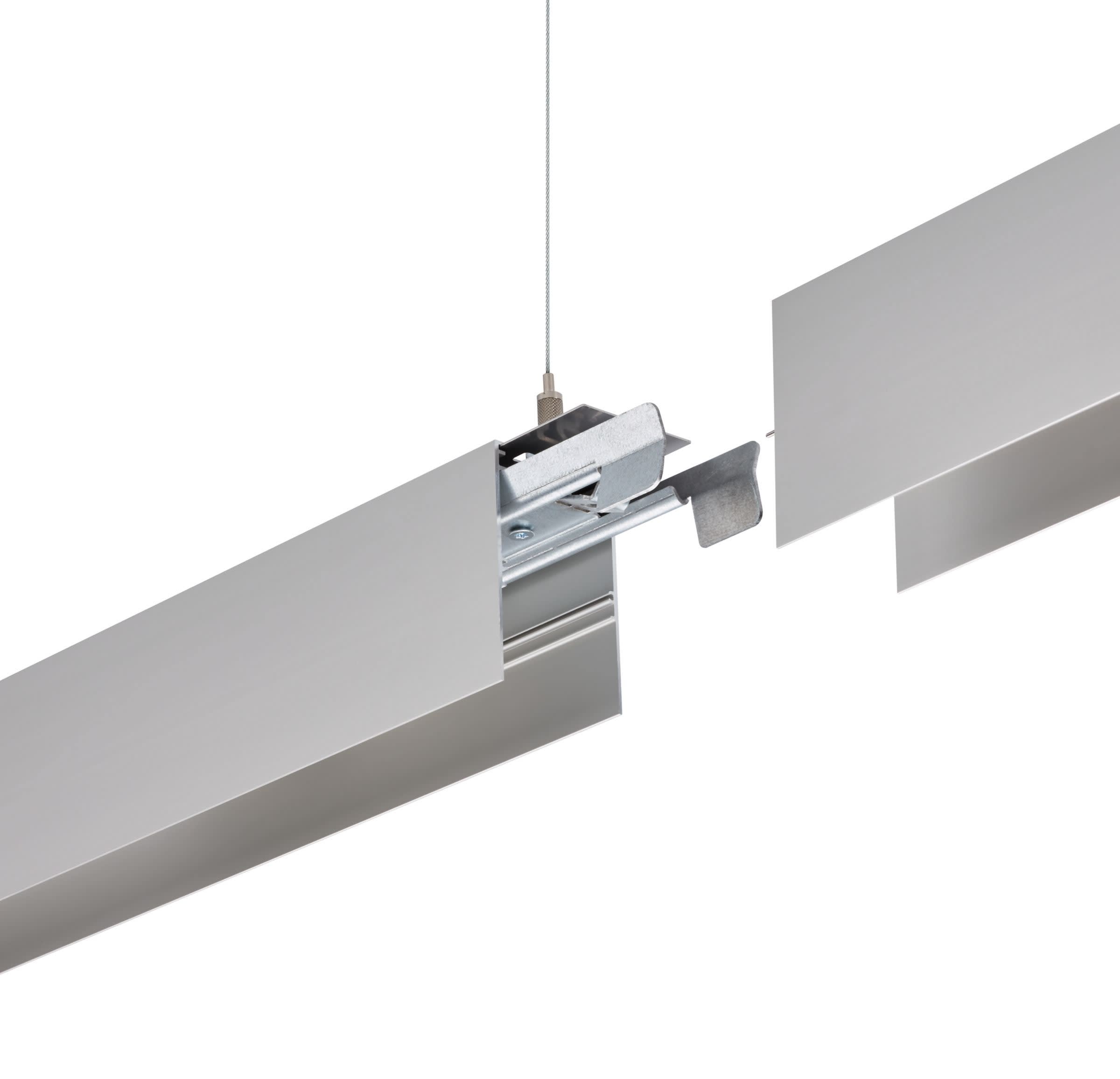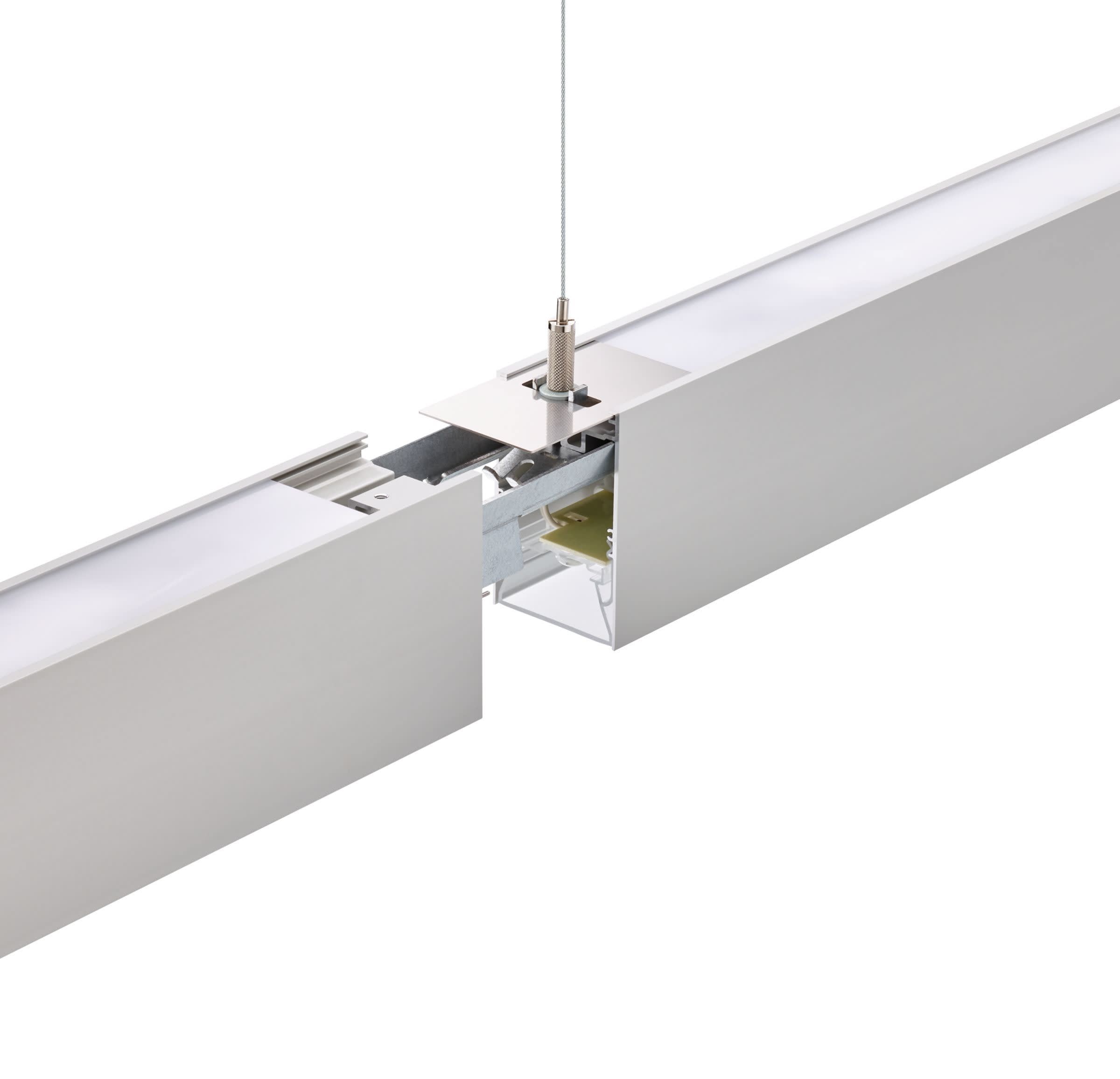 1130x55 mm; H88 mm, Aluminium, Aluminium, Plafonnier, Bloc d'alimentation avec interface DALI, 4000 lm, 28.5 W, 138 lm/W, 4000 K, (0.38, 0.38) SDCM 3, CRI90, UGR19, Faisceau extensif, Dépoli, Polyméthacrylate de méthyle, IP20 | Protection des doigts, IK03 | 0,35 J renforcé, Classe électrique I, Connecteur à poussoir 5 pôles