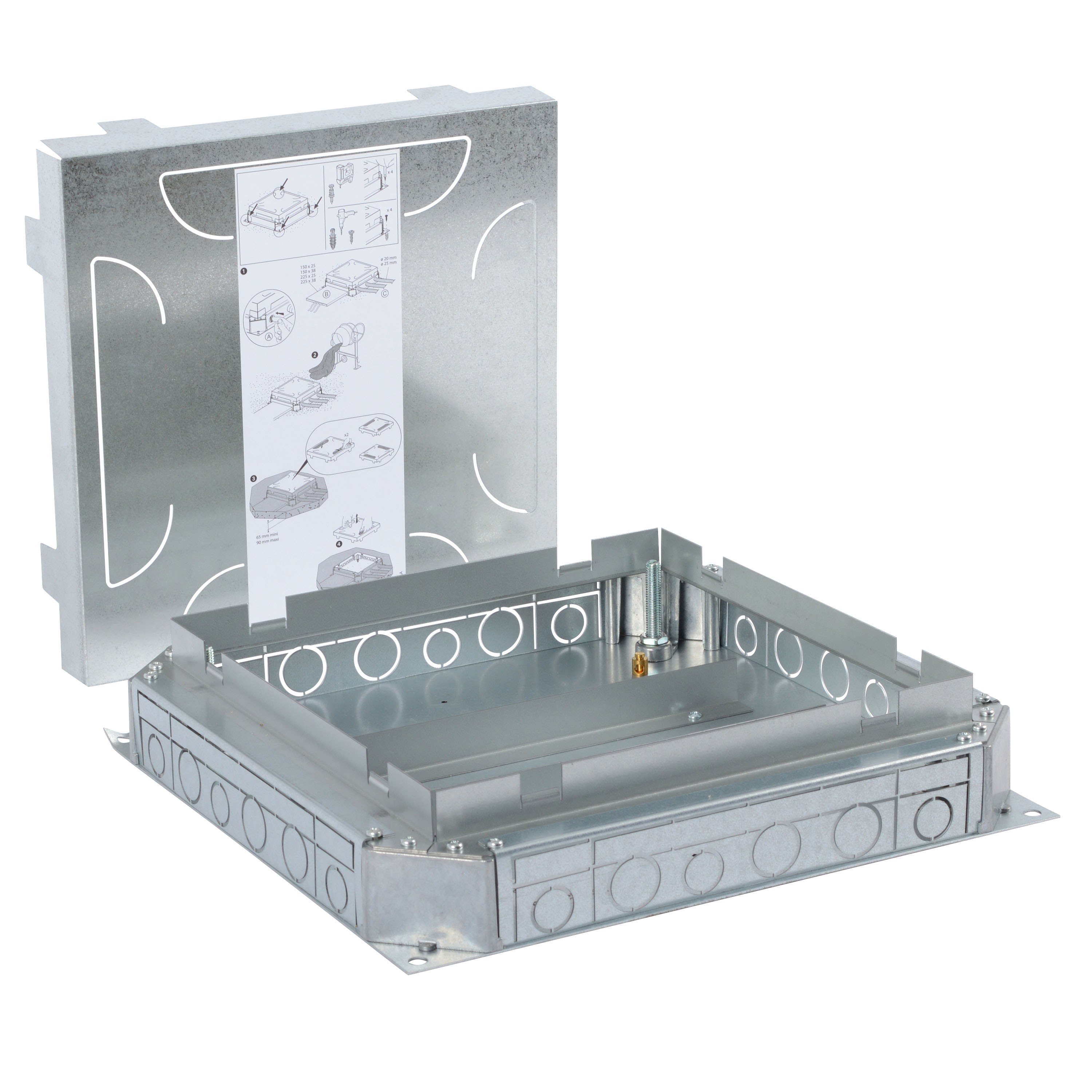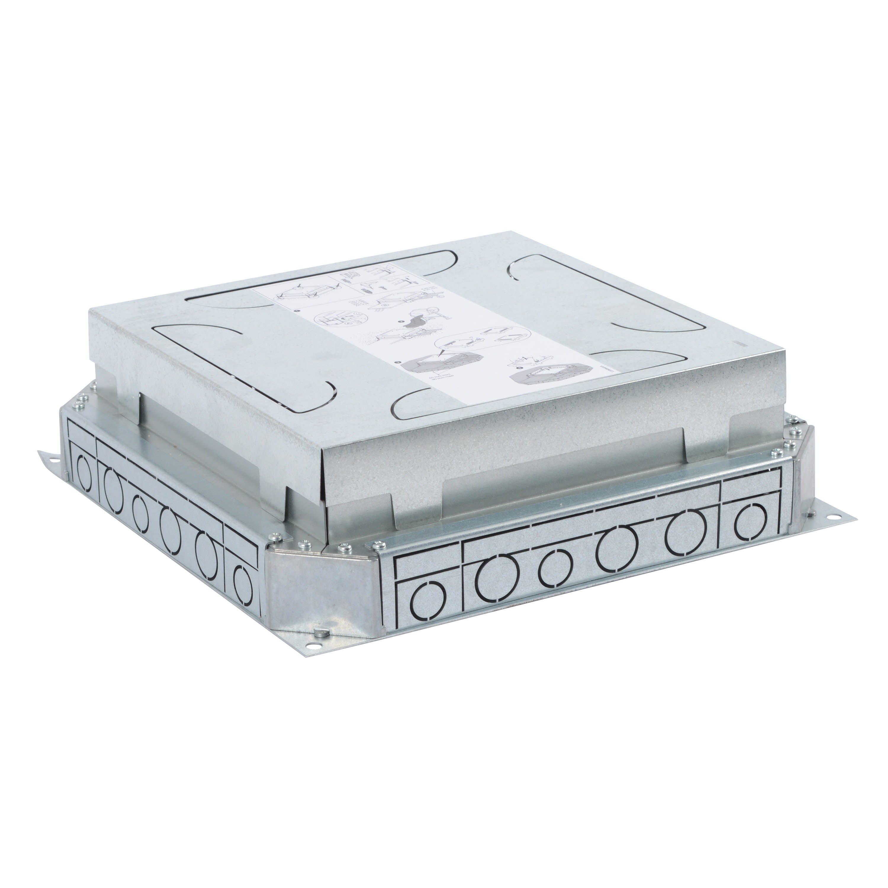 A fixer par spittage ou chevillage dans la dalle béton Opercules à replier permettant la prise en main de la protection de la boite d’encastrement pour ouverture hauteur de conduit max. 38mm largeur maxi 225mm / Ø20 à 25mm Permet l'installation dans boîtes réf. 28410/411/412 dans un sol béton