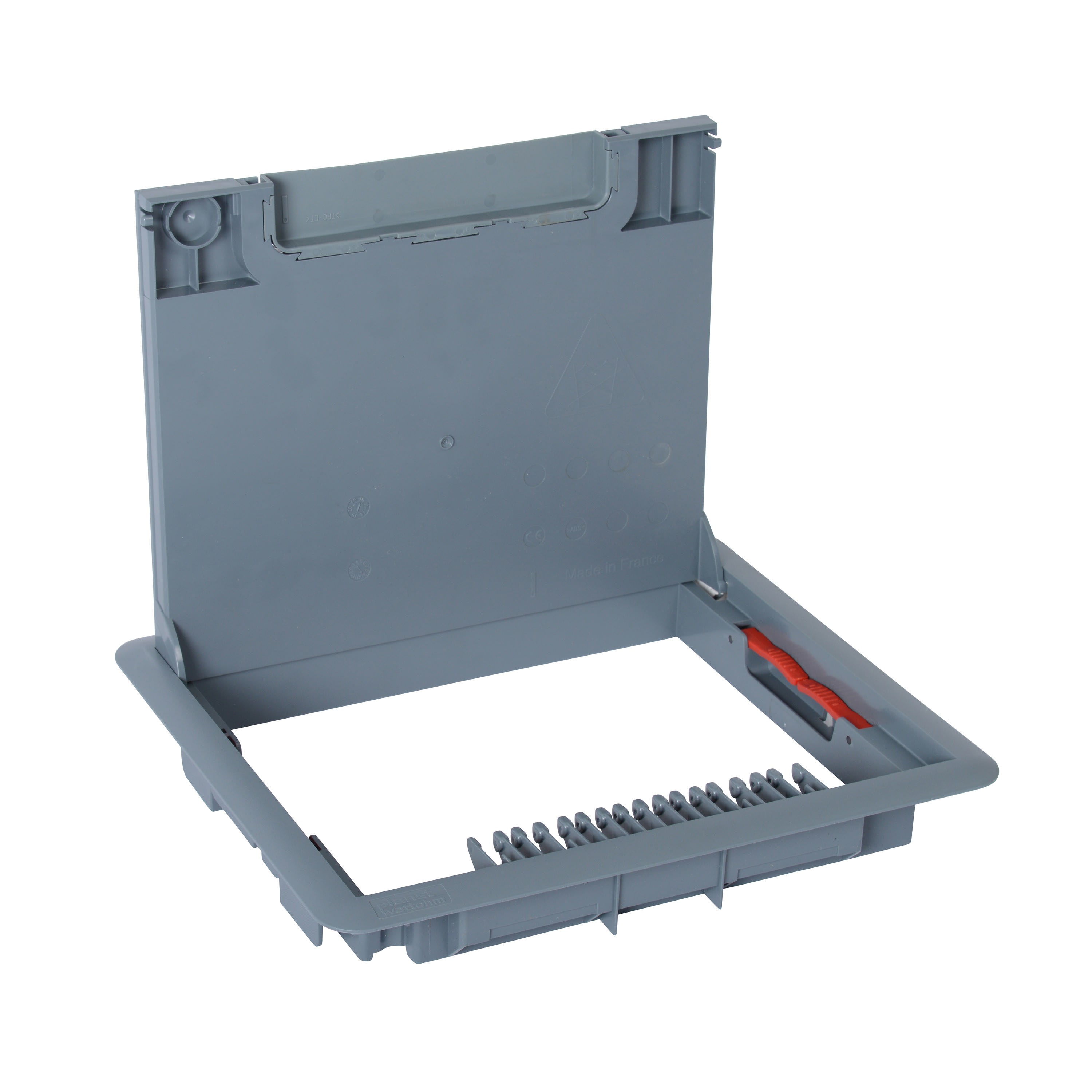 Accepte tout type de revêtement jusque 8mm d'épaisseur Couvercle amovible pour faciliter les connexions aux appareillages Sortie de câble flexible qui épouse les cordons connectés et qui reprend sa position initiale lorsque non-utilisée