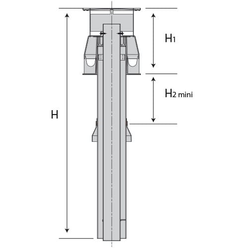 Sortie de toit terminal vertical, double paroi, Lame d'air, DUALIS BASSE TEMPÉRATURE Poujoulat diam.60/100 - 1.000 mm pour Chaudière